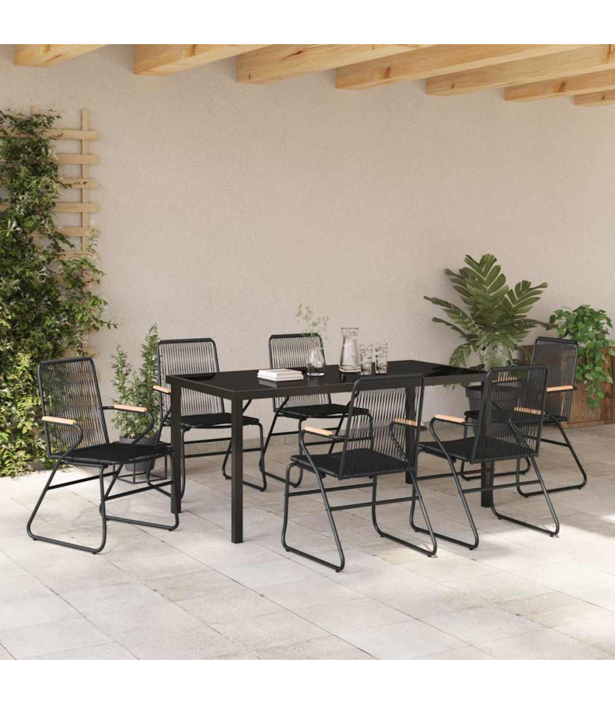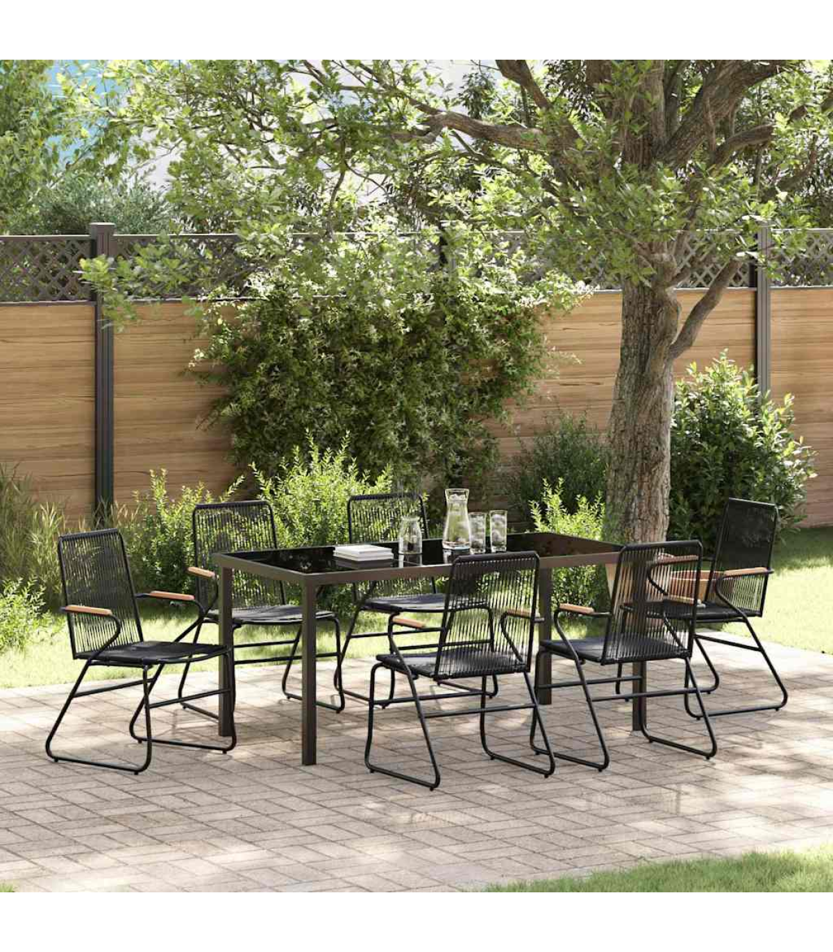 Create a chic and comfy outdoor space with this stylish furniture set. It's just right for any garden or terrace, bringing a modern touch with its sleek design and practical features. The textured finish gives it a nice look while keeping that relaxed vibe, perfect for summer parties or quiet downtime. Turn your outdoors into a welcoming hangout spot where mates can chill, have a meal, and enjoy good company surrounded by stylish, sturdy furniture. Materials: The set is made from tough PVC rattan that not only looks great but is also super durable. It's designed to handle the weather while keeping its colour and shape. Plus, the powder-coated steel adds to the overall strength, ensuring it lasts ages. Included Components: This furniture set comes with an ergonomic backrest made of PVC, mixed with powder-coated steel armrests and legs for comfy seating. There's also a smooth tempered glass tabletop that's easy to clean – perfect for meals or drinks, blending practicality with a stylish look. Features / Function / Design: This furniture set really catches the eye in any garden with its modern design and clever structure. With UV-resistant materials that stop fading and sun damage, it keeps looking good over time. Recommended Uses: Great for gardens and terraces, this set fits right in with outdoor living, whether you’re hosting a party, having a meal, or just chilling out. It’s versatile enough to meet all your outdoor seating needs, adding to the fun and charm of any space. Care & Maintenance: To keep it in top shape, use a cover when it’s not in use, especially during bad weather. A quick wipe with a cloth will keep it looking sharp, and storing it protected extends its lifespan, keeping your garden looking fab. Maximum 110 kg per seat.