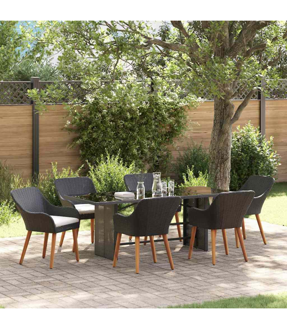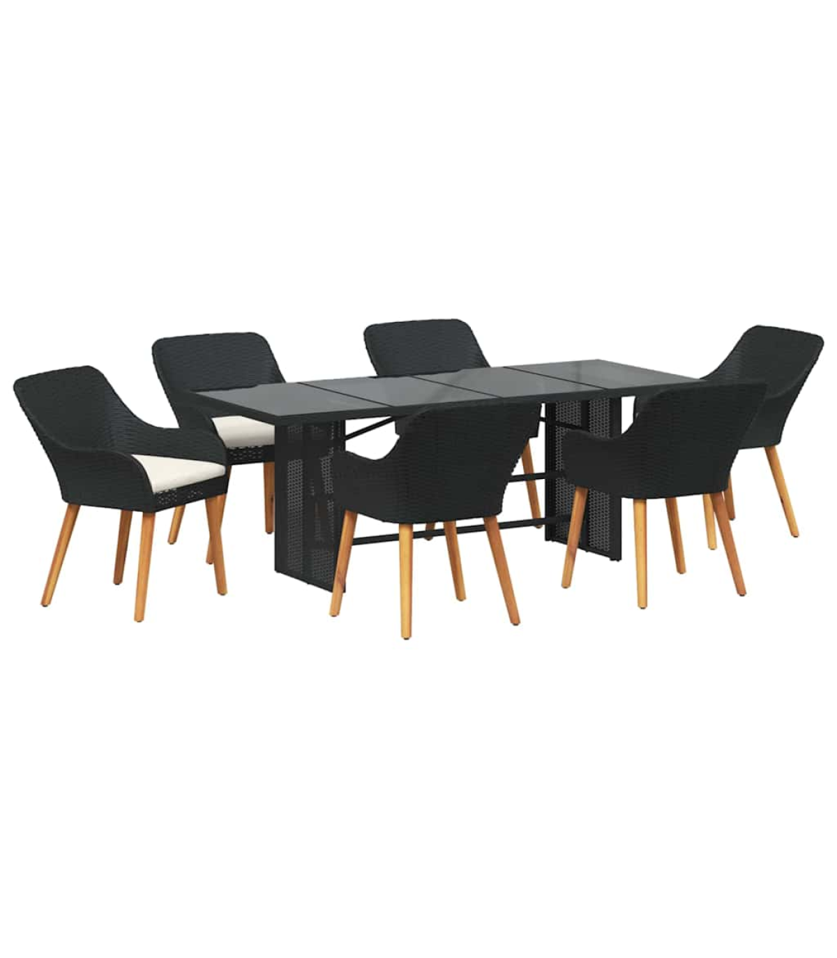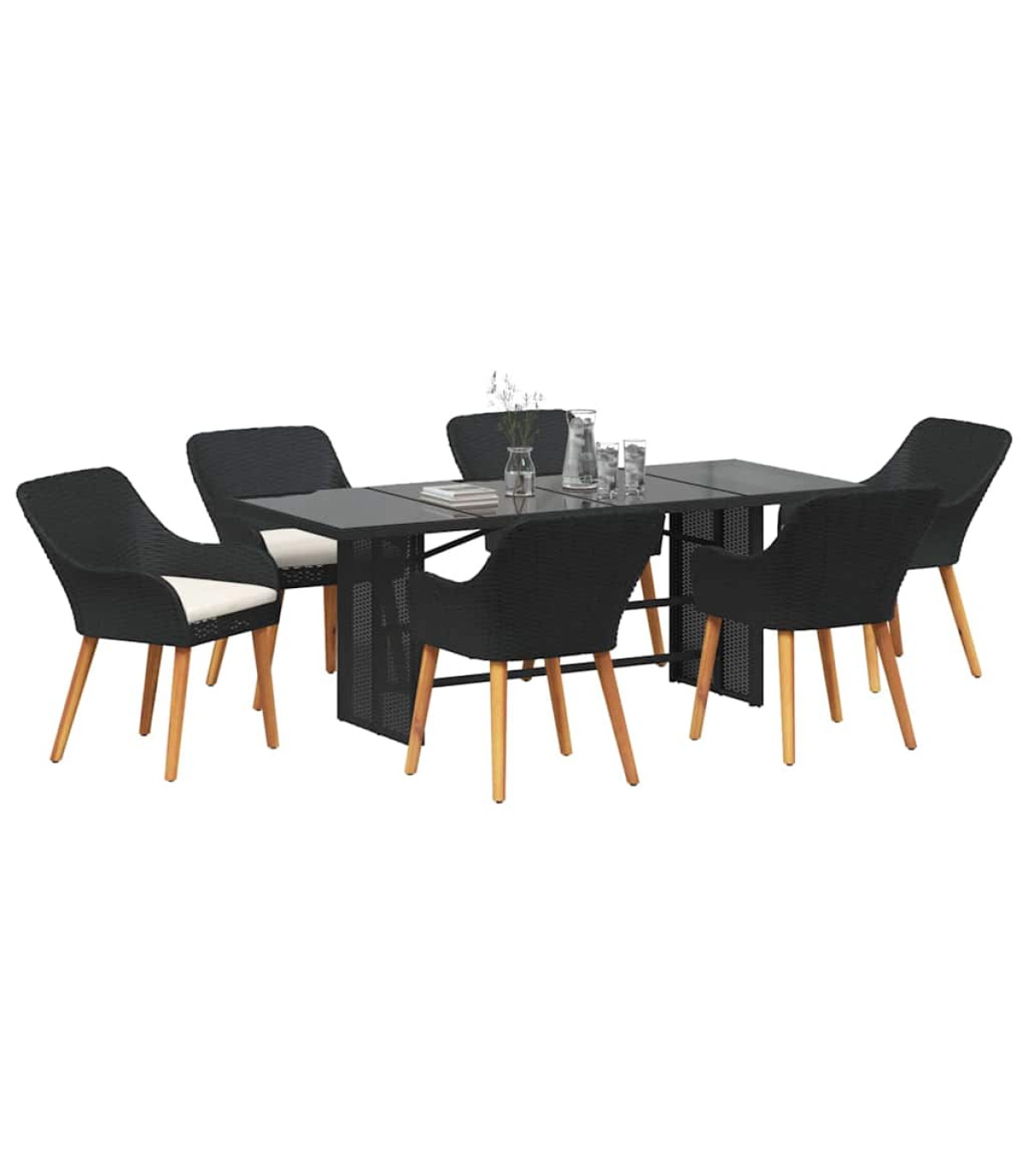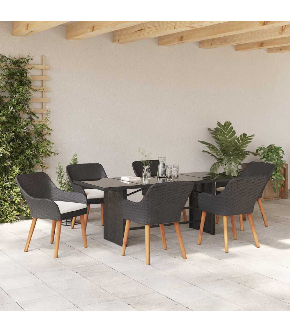 vidaXL Garden Dining Set with Cushion 7 pcs Black Poly Rattan
