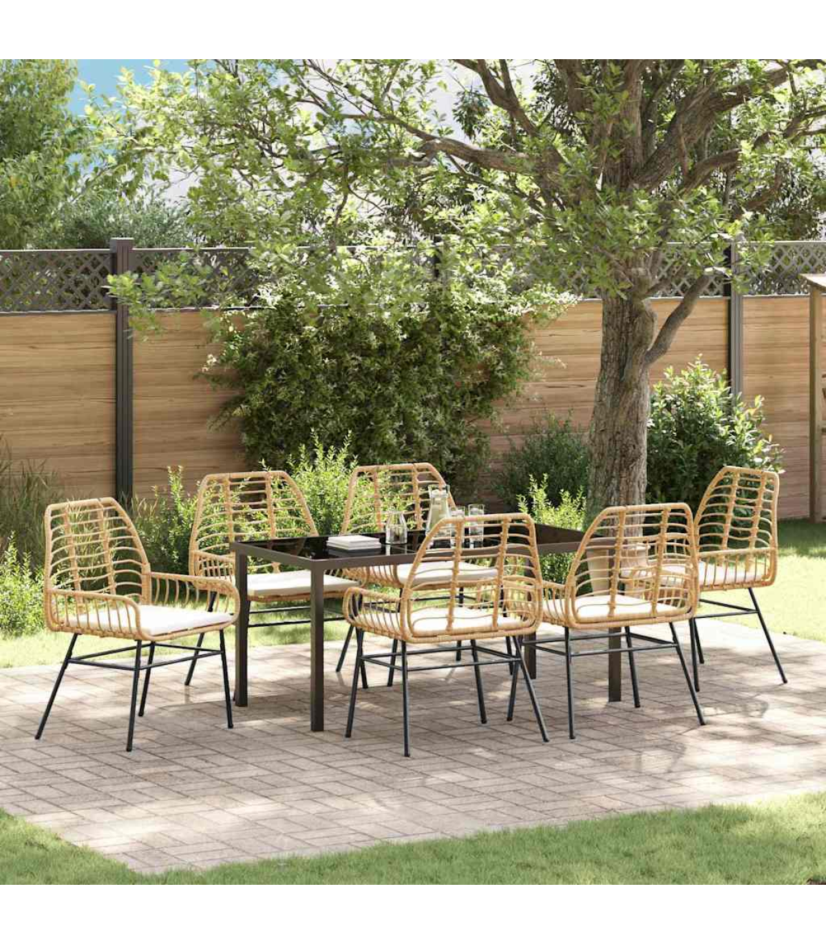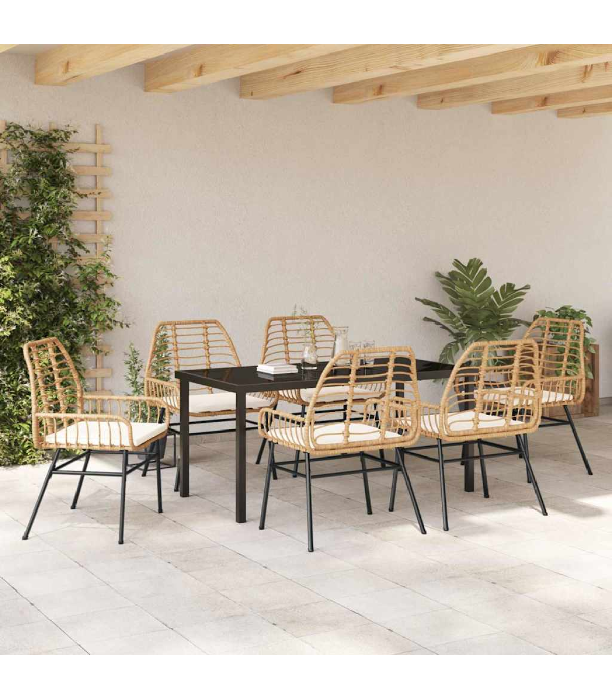 vidaXL Garden Dining Set 7 pcs Brown Poly Rattan