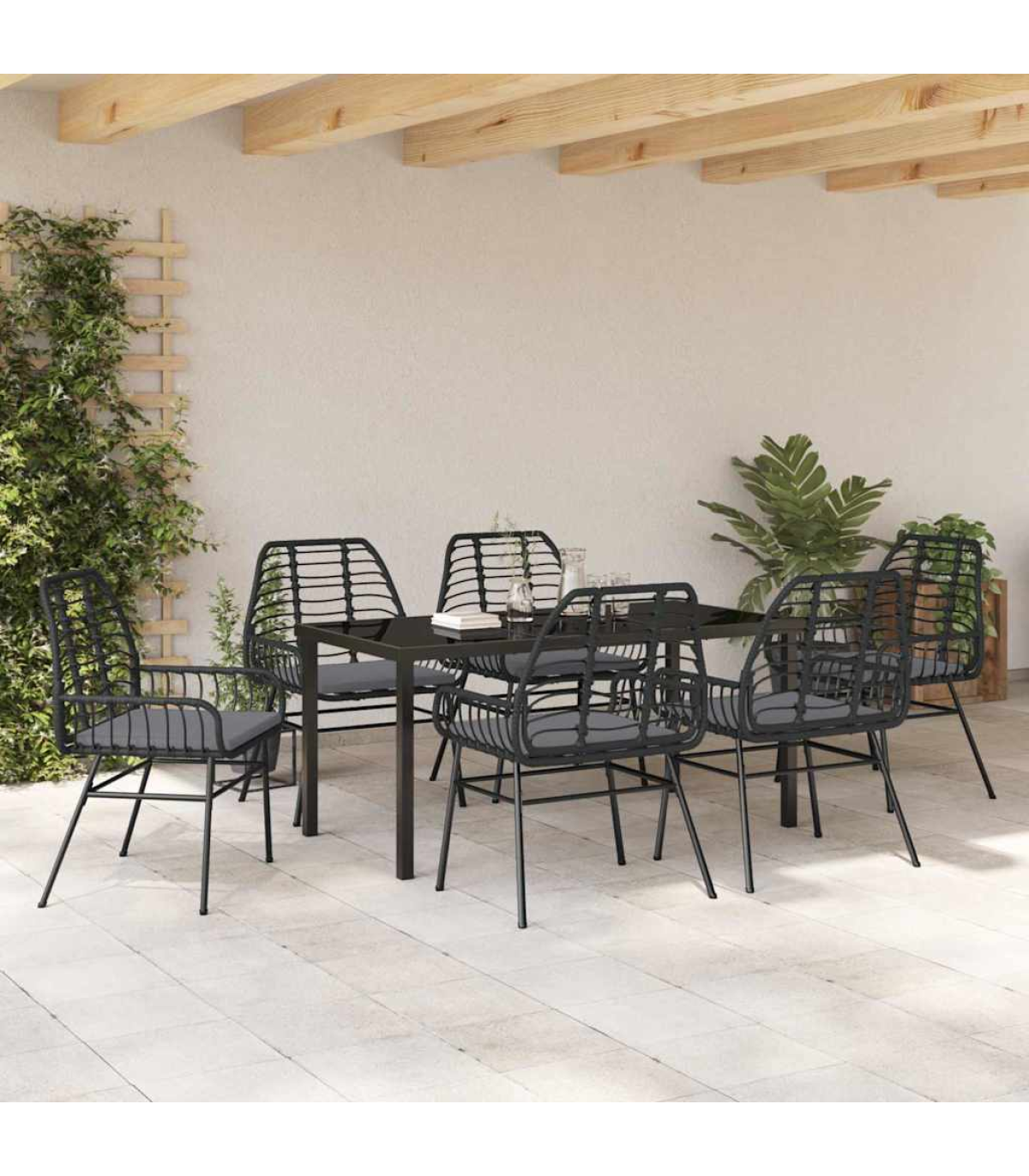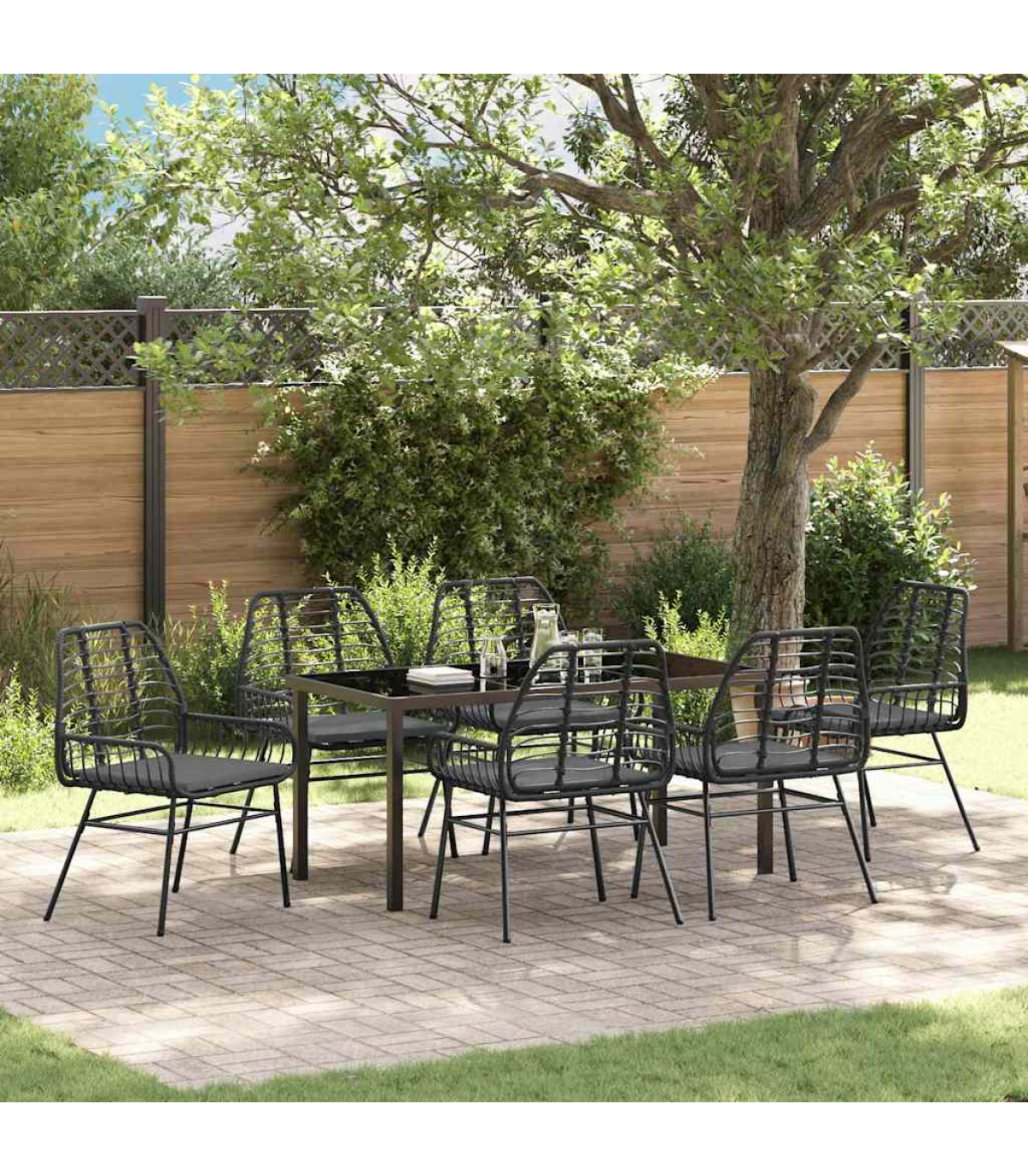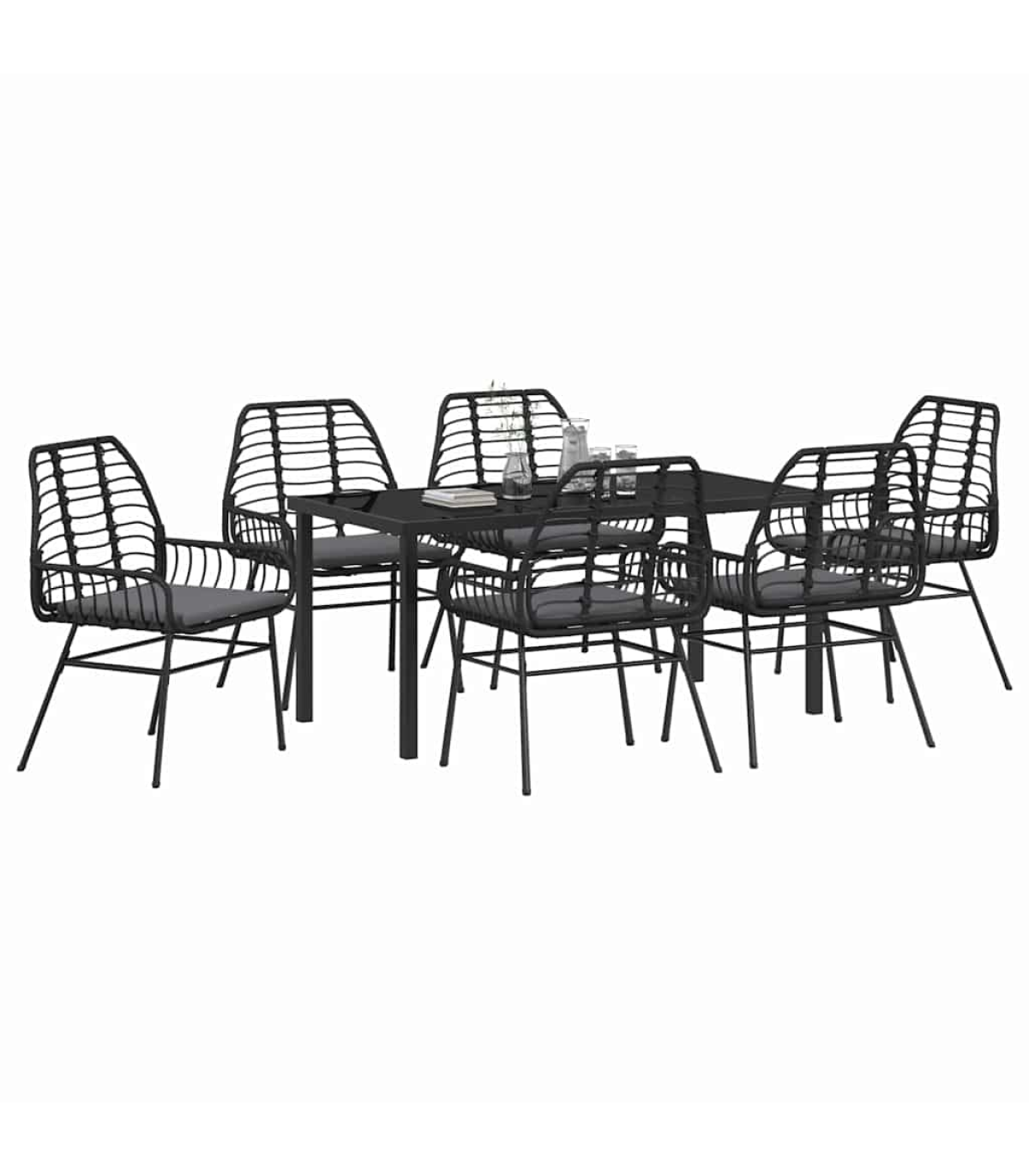 This Modern Garden Dining Set shouts sleek elegance with its tidy lines and minimalist vibe, making it the perfect choice for outdoor dining in the summer. Crafted for those who love style without the fuss, this set meets practical needs while looking fab, blending right in with your garden or terrace. Whether you’re having mates over or enjoying a meal outside, it’s designed to be comfy and easy on the eye. Sturdy Steel Frame: Built to last, this dining set gives you solid support. Steel’s tough and weather-resistant, making it perfect for the outdoors, so it can handle changing temperatures without a hitch. Stylish Glass Top: The glass surface brings a modern touch, shining in the sunlight for a bright dining experience. It’s a breeze to clean too, staying looking smart with hardly any effort, great for daily use or fancy dinners. Comfy Poly Rattan Armrests: Ergonomically shaped for relaxed arms, these poly rattan armrests don’t just look good; they feel good too, providing some extra cushioning while you sit. Summer-Ready Design: Made especially for those sunny days, the materials and build ensure you can chill outside comfortably. It’s perfect for hot weather and fits right in with your summer decorations. Easy Care: To keep it looking lovely for ages, just cover it when you’re not using it. This keeps it safe from the elements, dust, and any potential damage. Maximum 110 kg per seat. Be aware of the risk of open fires and other sources of strong heat in the vicinity of the product.