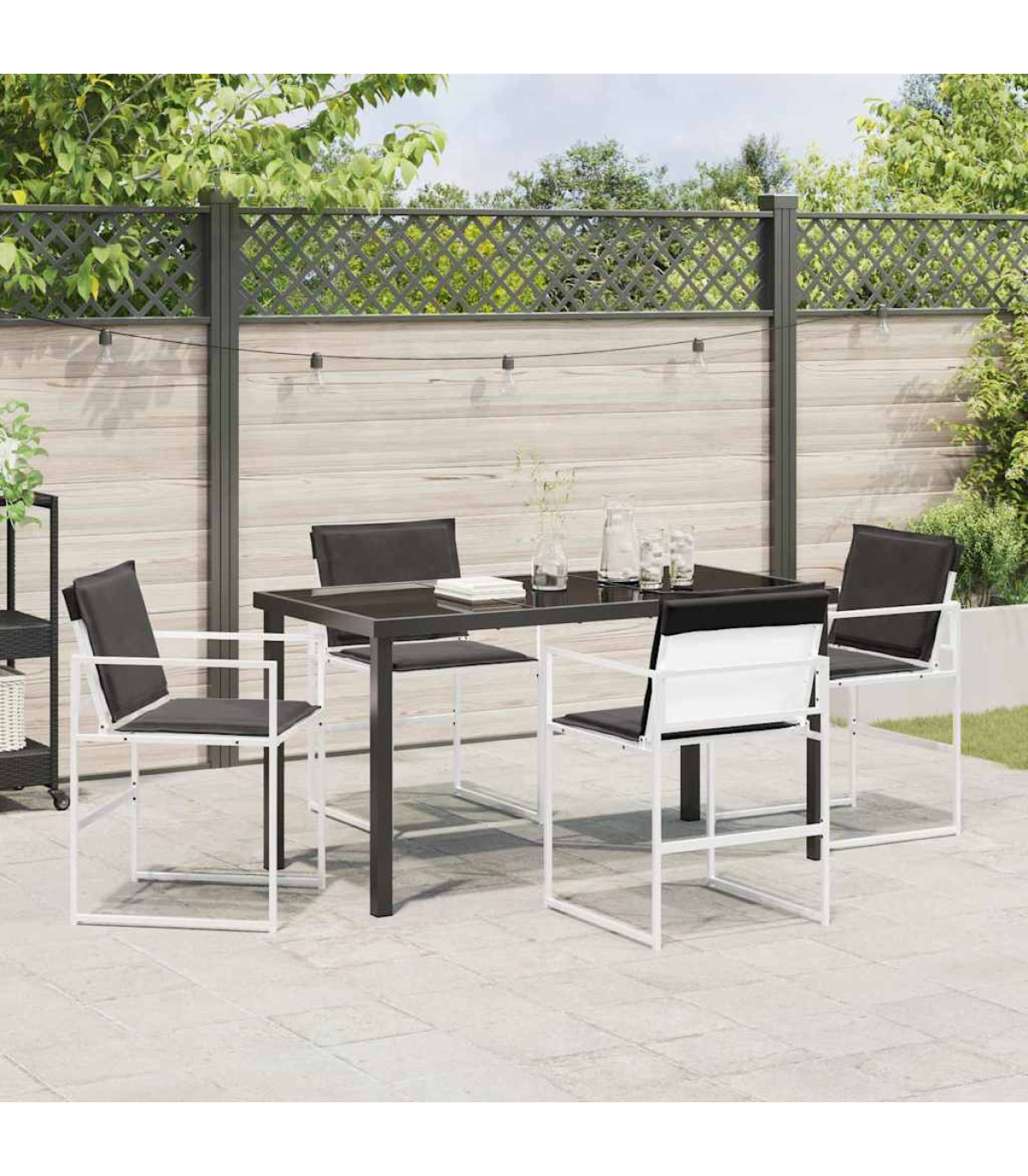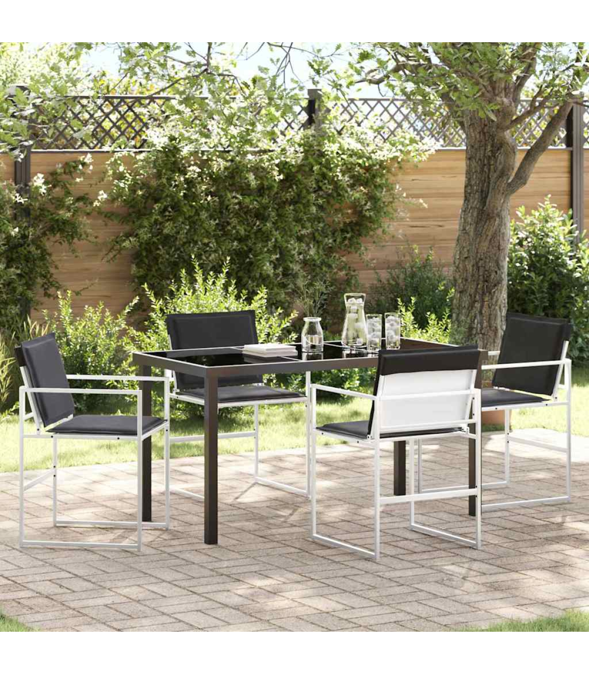 The Modern Outdoor Furniture Set is all about style and usefulness, giving you great seating for patios and terraces. Its sleek rectangular shape and modern vibe blend effortlessly with any outdoor setting. The smooth finish really highlights that minimalist charm, making your garden look even prettier while providing a nice spot to relax during warm summer afternoons. Materials: Made from tough Textilene and powder-coated steel, it's built to last and handle UV rays like a pro, keeping it looking good over time. The materials feel smooth and sturdy, promising comfort and dependability outdoors. Included Components: Comes with everything you need, including a Textilene seat and back, sturdy powder-coated steel armrests and legs, plus a tempered glass tabletop. These pieces work together to create a flexible seating experience, whether you're on a terrace or in a little city garden. Features / Function / Design: This set is designed to fold up, making it easy to store whenever you're not using it. It can adapt to different spots, making the most of your space while keeping that sophisticated look with its modern lines. Recommended Uses: Ideal for outdoor parties, the set can handle all kinds of weather. Great for city flats or suburban homes, the modular design lets you set it up just how you like for gatherings or solo chill time. Care & Maintenance: Keep it looking good by covering it when you're not using it. The materials are water-resistant, so they don't need much fuss. A quick clean and some protection from harsh weather keep the set looking sharp and functional. Maximum 110 kg per seat. Be aware of the risk of open fires and other sources of strong heat in the vicinity of the product.
