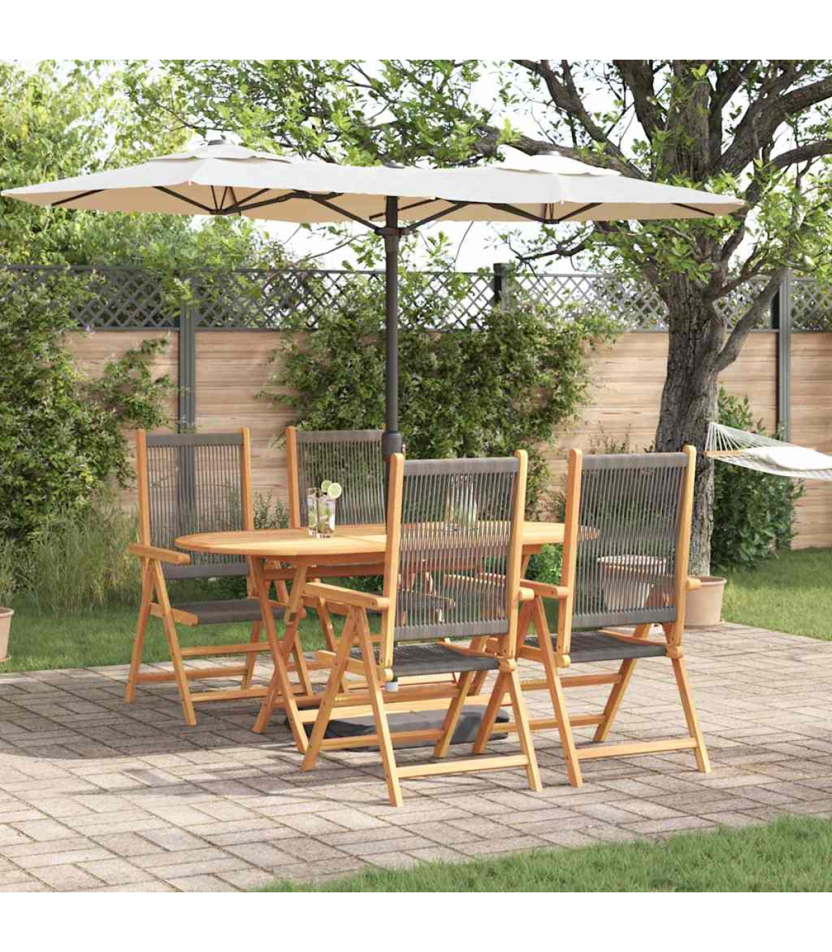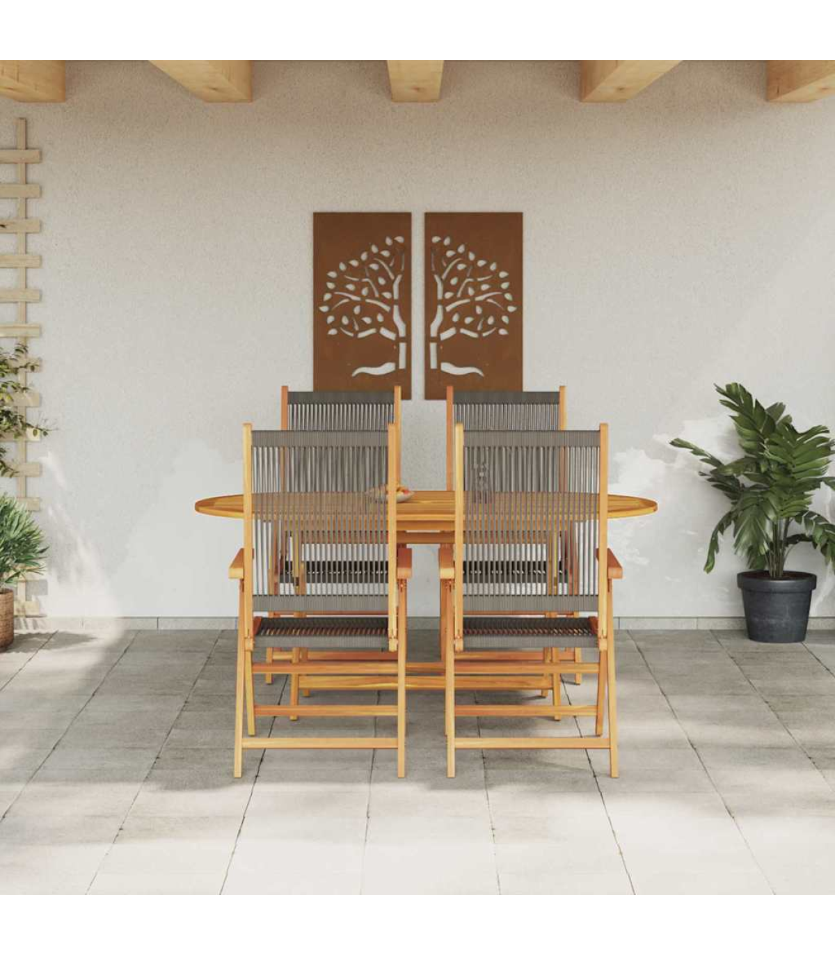 This Garden Dining Set is spot on for outdoor meals, whether it's with family or friends. With its trendy feel, smooth texture, and oval shape, it looks great in any garden. Its rich brown colour blends in nicely with nature. You get style and function all in one, providing a lovely space for alfresco dining, no matter where you set it up. Top-Notch Materials: Made from solid acacia wood and poly rattan, this dining set is built to last. The wood is oiled to protect against moisture and bring out its natural colour. Perfect for the outdoors, these materials give off an earthy vibe that makes any garden pop. What's Included: The set comes with sturdy armrests that match in brown, giving it a unified look. The poly rattan backrest adds comfort for those long chats over dinner. The solid legs made from acacia wood make sure it’s stable even on uneven ground. Handy Features: The foldable design means the table and chairs can collapse down for easy storage or transport. This makes it very versatile for seasonal use or moving around your outdoor space. Multi-Use: This set is great for gardens and terraces, perfect for summer parties, afternoon teas, or dinner under the stars. It's flexible, suiting both casual and formal events effortlessly. Care & Maintenance: Keeping it looking good is easy; just wipe it down with a damp cloth. Use a cover when it's not in use to protect it from the elements and make it last longer. This way, you can enjoy dining outside year after year. Maximum 110 kg per seat.