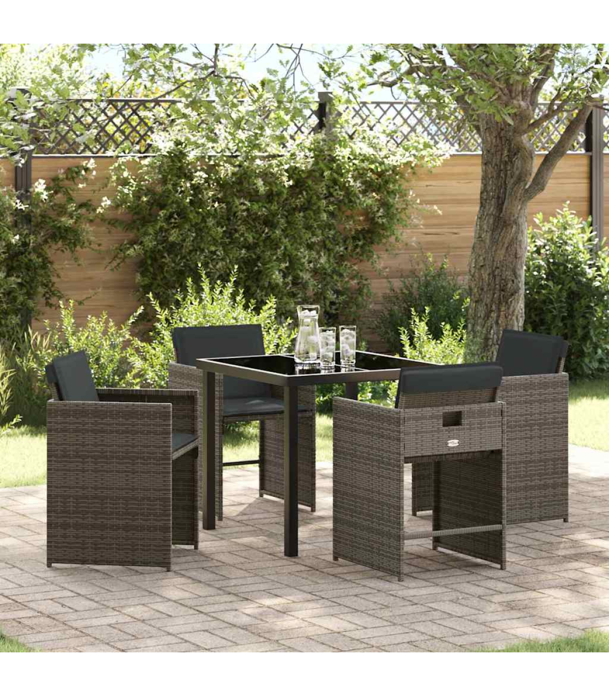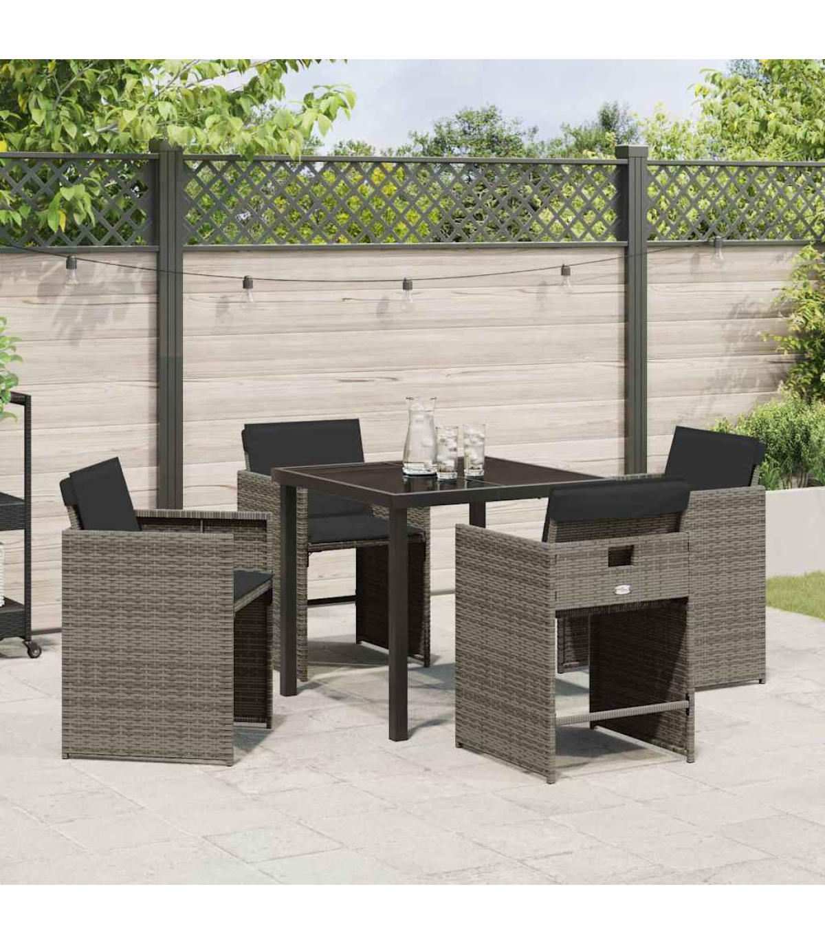 This fancy garden lounge set perfectly mixes modern design with practical use, making it a top pick for outdoor chilling and socialising. It’s made for folks who want a sleek, contemporary look with clean lines and no fuss, showcasing its trendy vibe. Ideal for gardens and terraces, it’s a lovely focal point, encouraging friends and family to kick back in comfort and style against a beautiful natural backdrop. Poly Rattan Material: This lounge set is made from high-quality poly rattan, which is super lightweight but tough, so it can handle UV rays and other outdoor stuff. It looks a lot like natural rattan but is way easier to take care of. Functional Components: With a nice back and narrow armrests, this set is both stylish and comfy. The cushions are filled with polyester fibre, giving you a supportive seat for those lazy days. Plus, the glass surface adds a bit of posh to its modern style. Modern Design Aesthetics: Simple yet stylish, this set fits in with loads of outdoor setups, thanks to its sleek lines and inviting vibe. The bold black finish adds an air of elegance while being adaptable to any space, whether it’s a minimalist terrace or a blooming garden. Versatile Seasonal Use: Made for summer, this lounge set easily fits into garden parties or chilled evenings, providing a comfy spot to share good times. Its outdoor-only design makes it a must-have for all your warm-weather gatherings. Care & Maintenance: Keep this lovely set looking great by using outdoor furniture covers when it's not in use and giving the glass a wipe every now and then. This simple care will keep it looking fab and standing strong for years of outdoor fun.