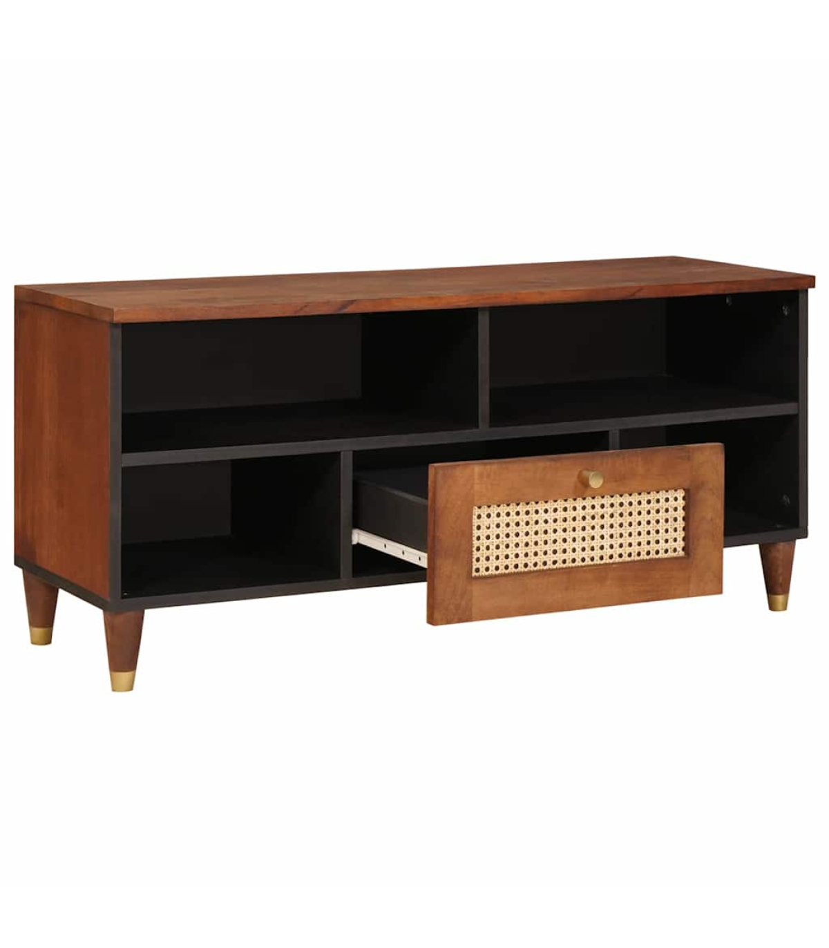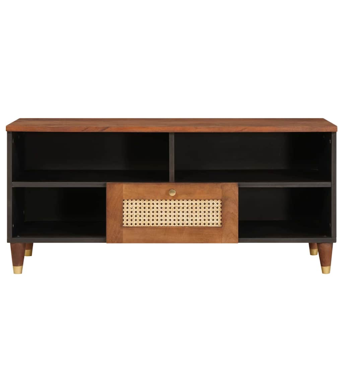 This Mango Wood TV Cabinet gives a natural touch with its lovely mix of solid mango wood and cane. It's designed to fit in with your living space, and its rectangular shape brings together style and function. Storing your entertainment gear will be easy with its roomy compartments, while the brown finish adds that cozy, earthy feel to your decor. This piece is made for indoors, combining traditional craftsmanship with a modern twist in one stylish item. Solid Mango Wood Structure Built tough with solid mango wood, this cabinet offers stability and longevity. Known for its dense texture and lasting quality, mango wood is great for furniture that’s used a lot, and it looks good doing it. Compartments for Organization With various compartments, this TV cabinet helps keep your space tidy and your essentials close at hand. Whether you're storing gaming consoles, speakers, or DVDs, the layout makes it easy to keep everything organised and clutter-free. Versatile Rectangular Design The sleek rectangular shape fits nicely in different room setups and styles. Whether it’s placed under your TV or used as a decorative piece, its versatility makes it a great addition to your space. Safety and Convenience Made for indoor use, this cabinet keeps your things safe from any nasty weather. Thoughtfully designed, it maximises both functionality and security for a comfortable environment. Assembly Required This cabinet needs a bit of assembling, but it’s straightforward. Grab a friend to help you out and follow the simple instructions for an easy setup. It’ll make sure your cabinet looks great and stays sturdy in your space.