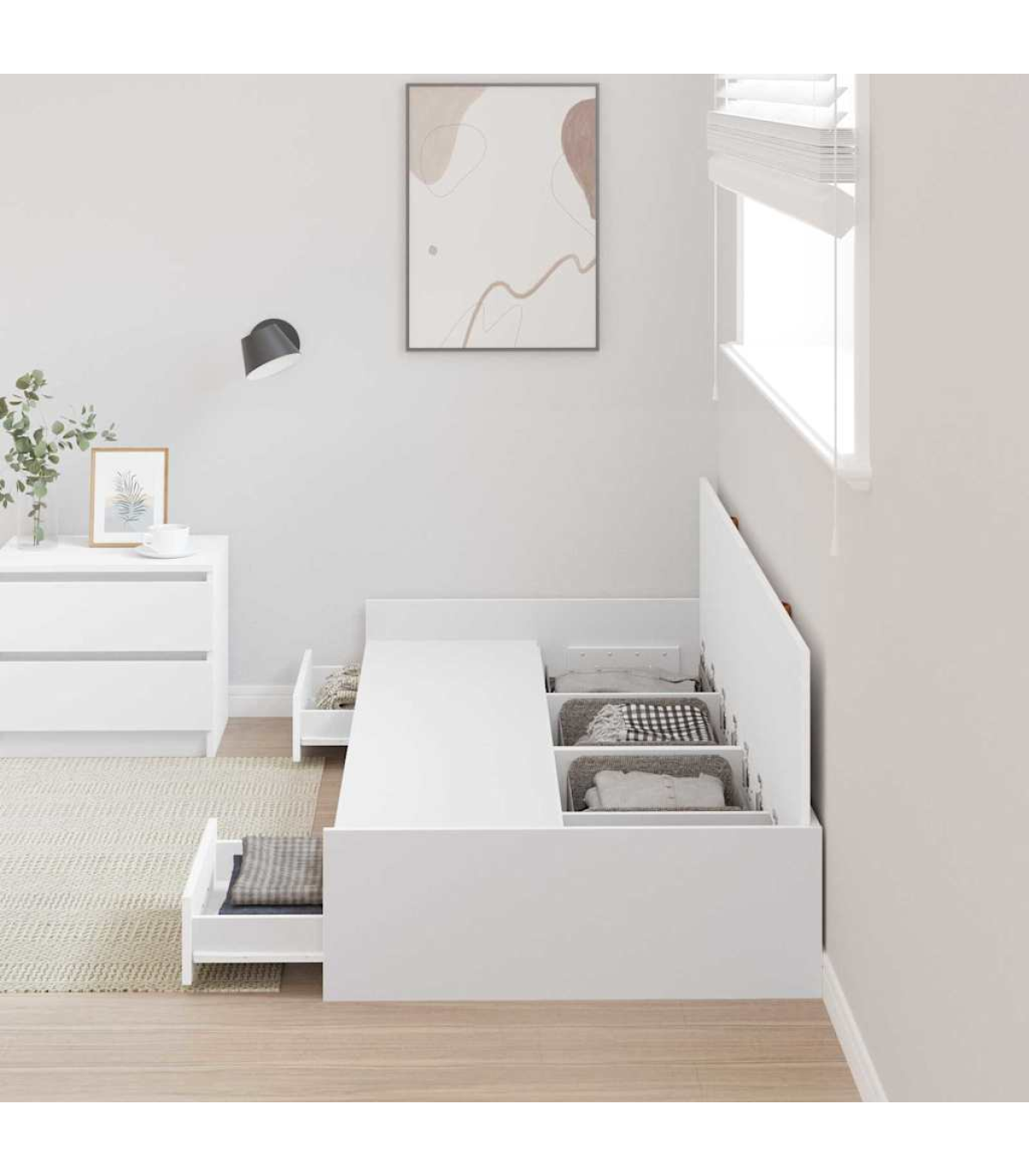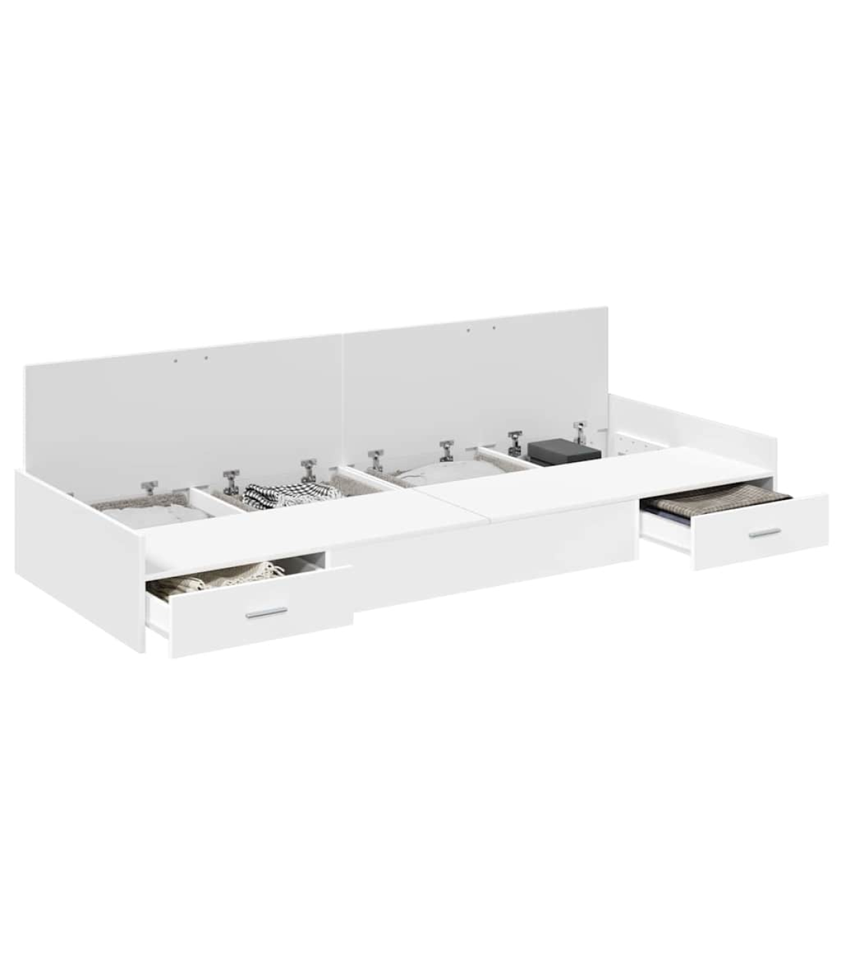 This storage bed frame, made from engineered wood, is a stylish and practical addition to any modern bedroom. Its rectangular shape and sleek design give it a clean, contemporary feel, perfect for those who appreciate simplicity. With built-in storage, this bed is ideal for maximising space and keeping things ordered, easily housing your belongings within a stylish frame. The storage feature not only improves the look of your room but also helps with organisation, making this bed a top choice for practical, modern homeowners. Engineered Wood Construction This storage bed frame is made from sturdy engineered wood, known for being reliable and strong, which means it'll last ages in your bedroom. The smooth surface adds to its durability and style, giving you a polished modern look that fits with all sorts of home interiors and provides a solid base for a good night's sleep. Integrated Storage Drawers With handy storage drawers tucked beneath the mattress, this bed gives you loads of room to stash away your stuff. The drawers slide open easily, so you can keep linens, seasonal clothes, books, or other bits and bobs, making it simple to keep your room tidy and giving you a smart way to optimise your sleeping area without skimping on style. Modern Minimalist Design With its clean lines and minimalistic surface, this bed frame is the embodiment of modern style. It goes well with a variety of décor themes and colours, serving as a functional focal point. Its understated charm makes it suitable for both minimalist and ornate bedrooms, ensuring you can place it anywhere while adding a hint of sophistication to your space. Easy Assembly Needed This bed frame is straightforward to put together with just two people and a hammer, so you won’t struggle at all, and it won’t compromise stability or style. The clever design means every part fits together seamlessly, giving you a strong, secure frame ready for long-term use, with little effort needed for upkeep once it’s all set up. Simple Maintenance Keeping this bed looking good is easy. Just give the surface a quick wipe with a damp cloth now and then, and it'll stay shiny and clean, making it a low-maintenance piece in your room. Taking good care of it ensures that the frame stays as stylish as the day it arrived.