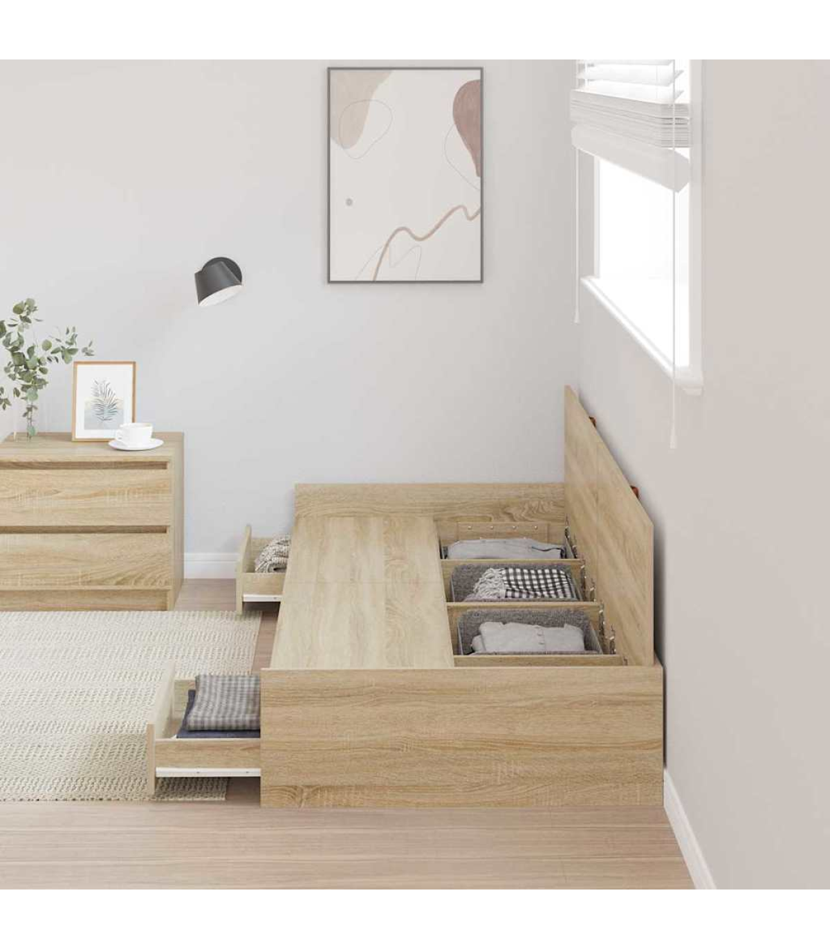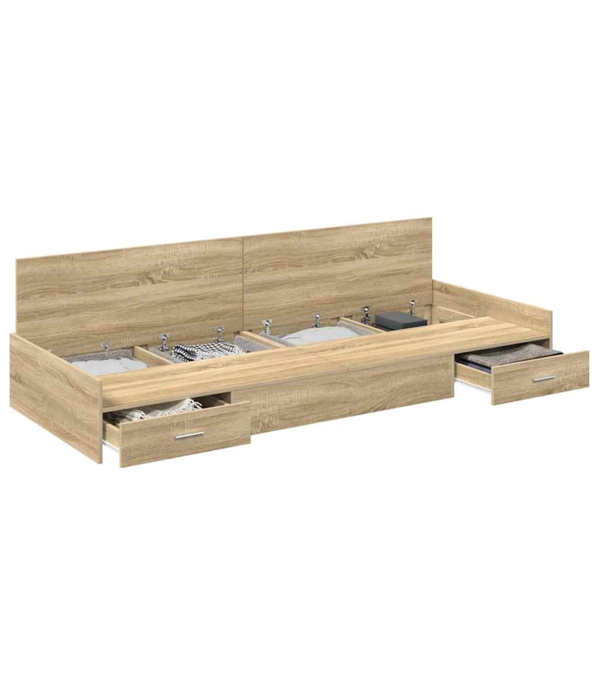 This storage bed frame, made from engineered wood, is a stylish and practical addition to any modern bedroom. Its rectangular shape and sleek design give it a clean, contemporary feel, perfect for those who appreciate simplicity. With built-in storage, this bed is ideal for maximising space and keeping things ordered, easily housing your belongings within a stylish frame. The storage feature not only improves the look of your room but also helps with organisation, making this bed a top choice for practical, modern homeowners. Engineered Wood Construction This storage bed frame is made from sturdy engineered wood, known for being reliable and strong, which means it'll last ages in your bedroom. The smooth surface adds to its durability and style, giving you a polished modern look that fits with all sorts of home interiors and provides a solid base for a good night's sleep. Integrated Storage Drawers With handy storage drawers tucked beneath the mattress, this bed gives you loads of room to stash away your stuff. The drawers slide open easily, so you can keep linens, seasonal clothes, books, or other bits and bobs, making it simple to keep your room tidy and giving you a smart way to optimise your sleeping area without skimping on style. Modern Minimalist Design With its clean lines and minimalistic surface, this bed frame is the embodiment of modern style. It goes well with a variety of décor themes and colours, serving as a functional focal point. Its understated charm makes it suitable for both minimalist and ornate bedrooms, ensuring you can place it anywhere while adding a hint of sophistication to your space. Easy Assembly Needed This bed frame is straightforward to put together with just two people and a hammer, so you won’t struggle at all, and it won’t compromise stability or style. The clever design means every part fits together seamlessly, giving you a strong, secure frame ready for long-term use, with little effort needed for upkeep once it’s all set up. Simple Maintenance Keeping this bed looking good is easy. Just give the surface a quick wipe with a damp cloth now and then, and it'll stay shiny and clean, making it a low-maintenance piece in your room. Taking good care of it ensures that the frame stays as stylish as the day it arrived.