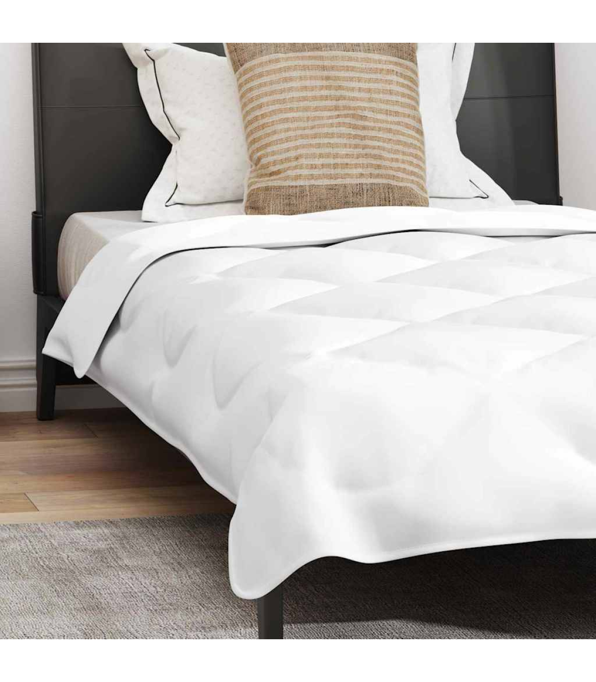 The Quilted Microfiber Winter Duvet Set brings a whole new level of comfort to your bedroom with its soft and extra warm design. Perfect for those nippy nights, it wraps you up nicely for warmth all through the winter. It's made to look good and work well, with a chic style that complements modern bedrooms, adding a touch of elegance for a restful night's sleep. Microfiber Composition This duvet set is crafted from high-quality microfiber, giving you a lightweight yet tough cover. It's breathable while still keeping you warm, making it spot on for winter. Its soft texture feels lovely every time you use it, enhancing your sleep experience. Included Components Each set comes with a duvet and a pillow, both designed for max comfort. The duvet is filled with polyester fiberfill, creating a warm barrier against the cold. The matching pillow supports your head while being comfy and resilient. Contemporary Style The quilted duvet brings a modern look with its sleek design. Its all-white colour liven up your room, easily matching different bedroom styles while keeping things fresh and clean. Ideal for Winter With a snug 450gsm filling, this duvet keeps you well-cocooned in warmth on chilly nights. Its design prevents cold spots by spreading the filling evenly, so you're comfy no matter where you lie on the bed. Easy Maintenance Made to be machine washable, this set is a breeze to clean. Just wash it at 30°C to keep it looking fresh. It's designed to maintain its appeal and performance with minimal fuss.