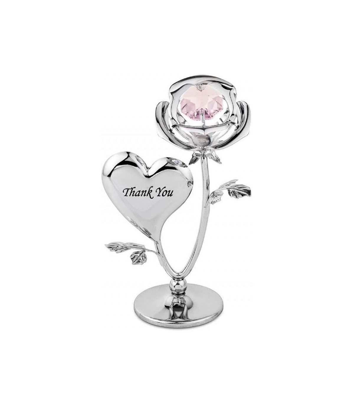 Freestanding chrome plated (never tarnishes) Thank you rose crystal ornament made with perfect craftsmanship. Measurement is H 8.0cm x W 5.0cm with pink crystal. Ideal appreciation gift for any A free standing ornament adorned with Swarovski Elements in a presentation box for wedding favours A fine collectable keepsake ornament by Crystocraft and would be a welcome addition to any existing or similar collection Many more fabulous Figurines in this range. A beautiful gift for him or her and for any occasion