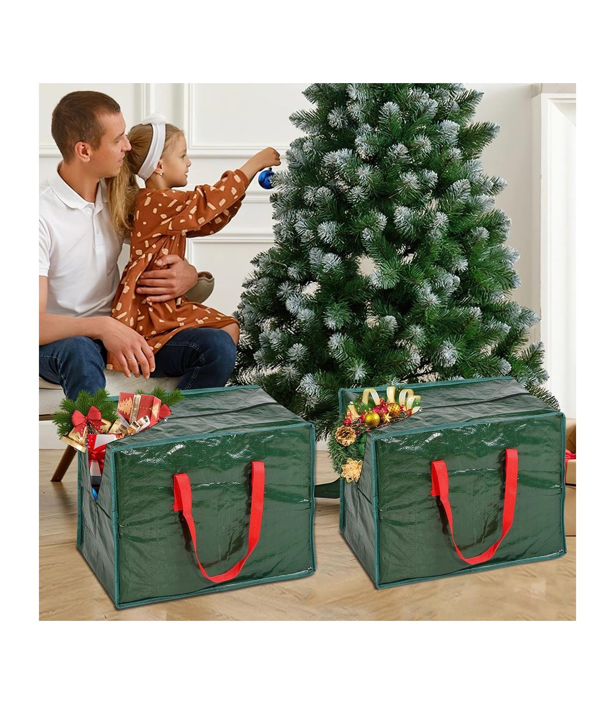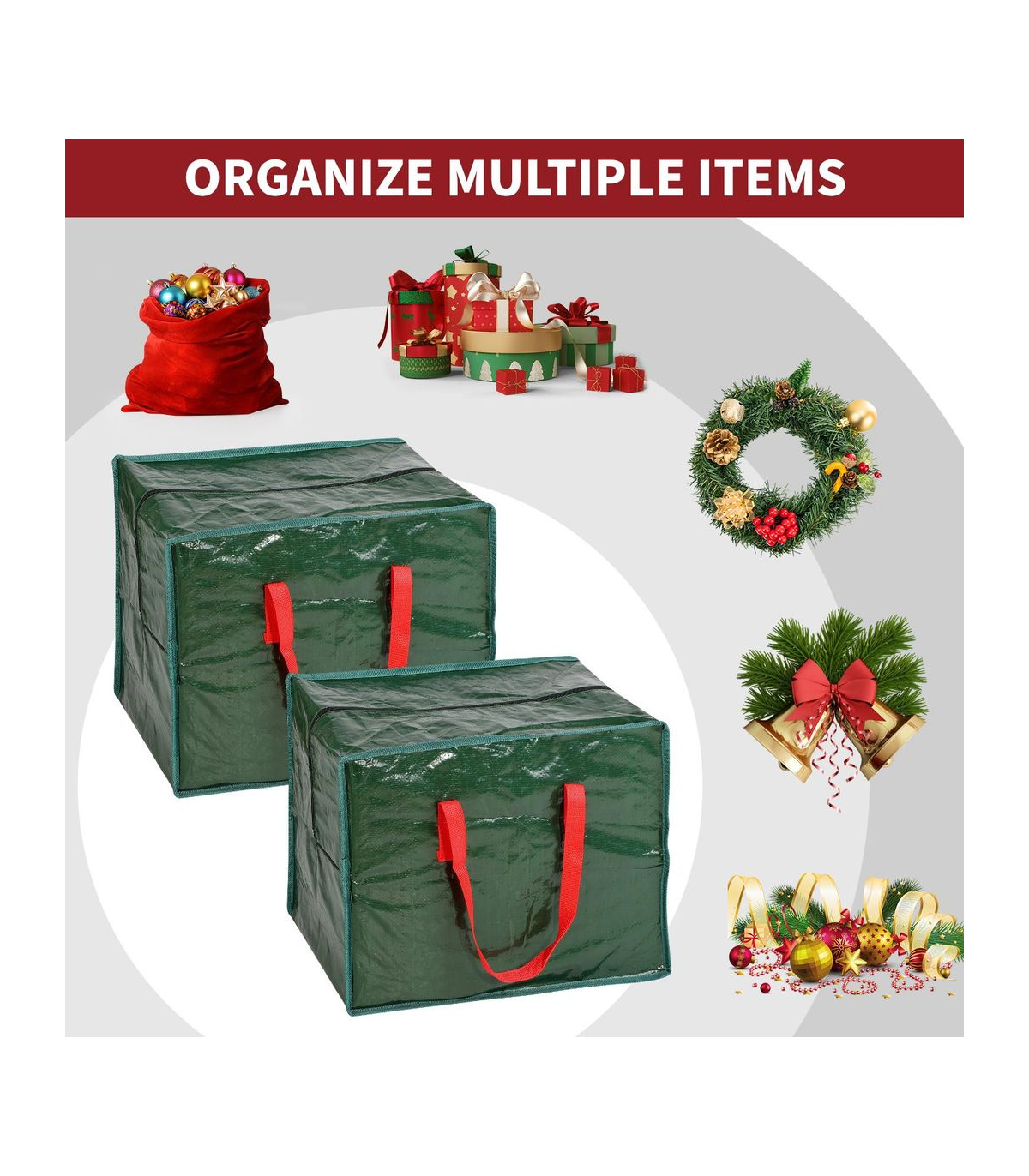HOLIDAY DECOR STORAGE SOLUTION: Ensure the safety of your decorations, ornaments, gift wrapping paper, and accessories with this Christmas storage bag. By effectively preventing damage and misplacement of decorations, it guarantees that your holiday embel