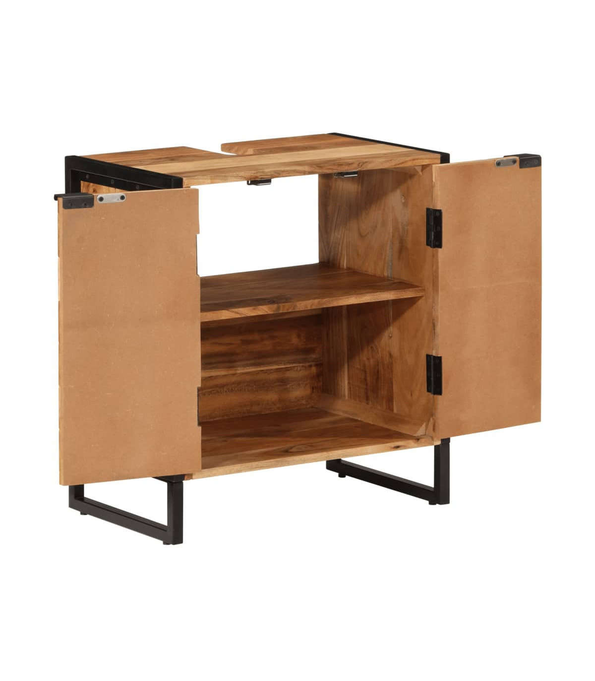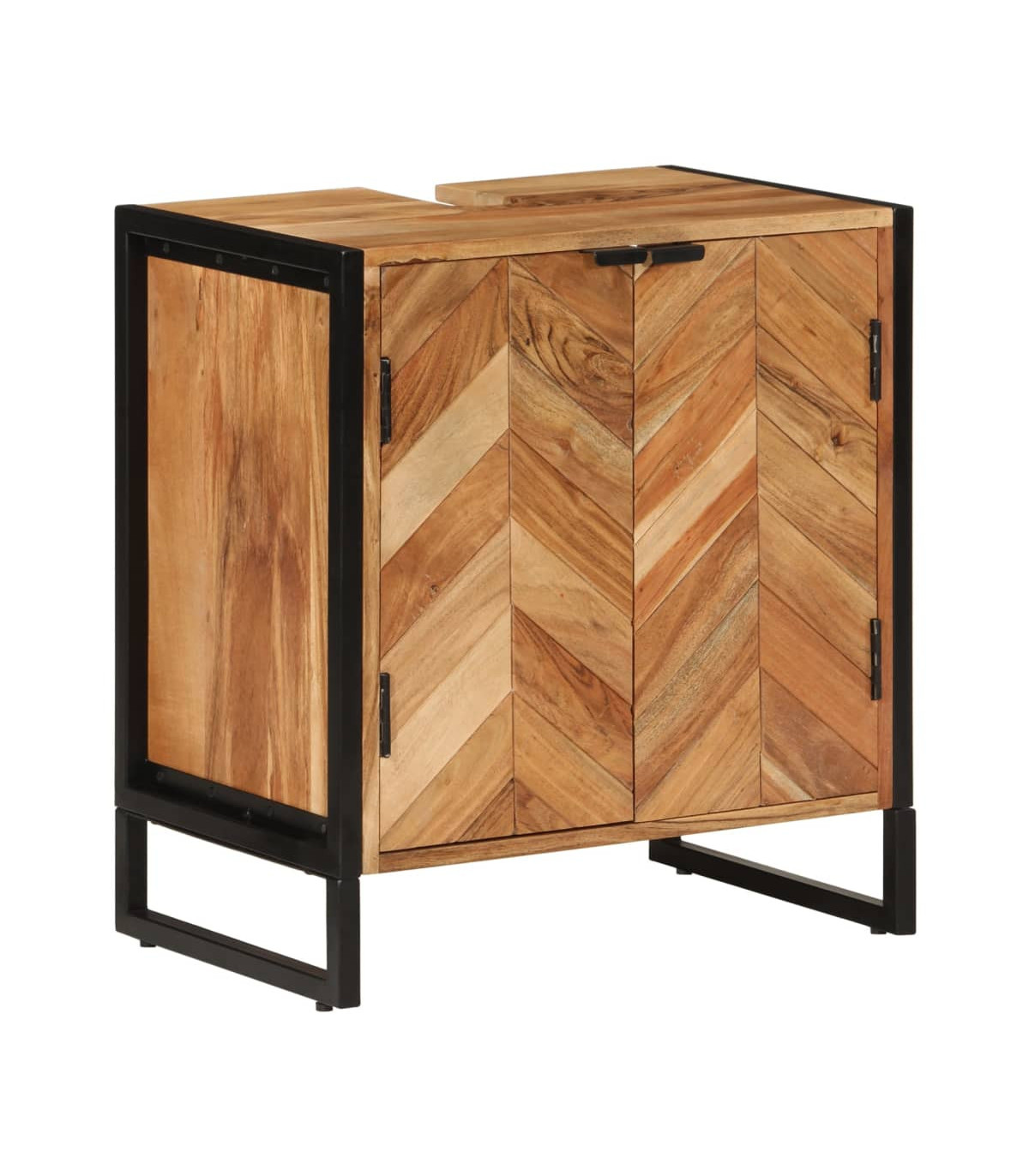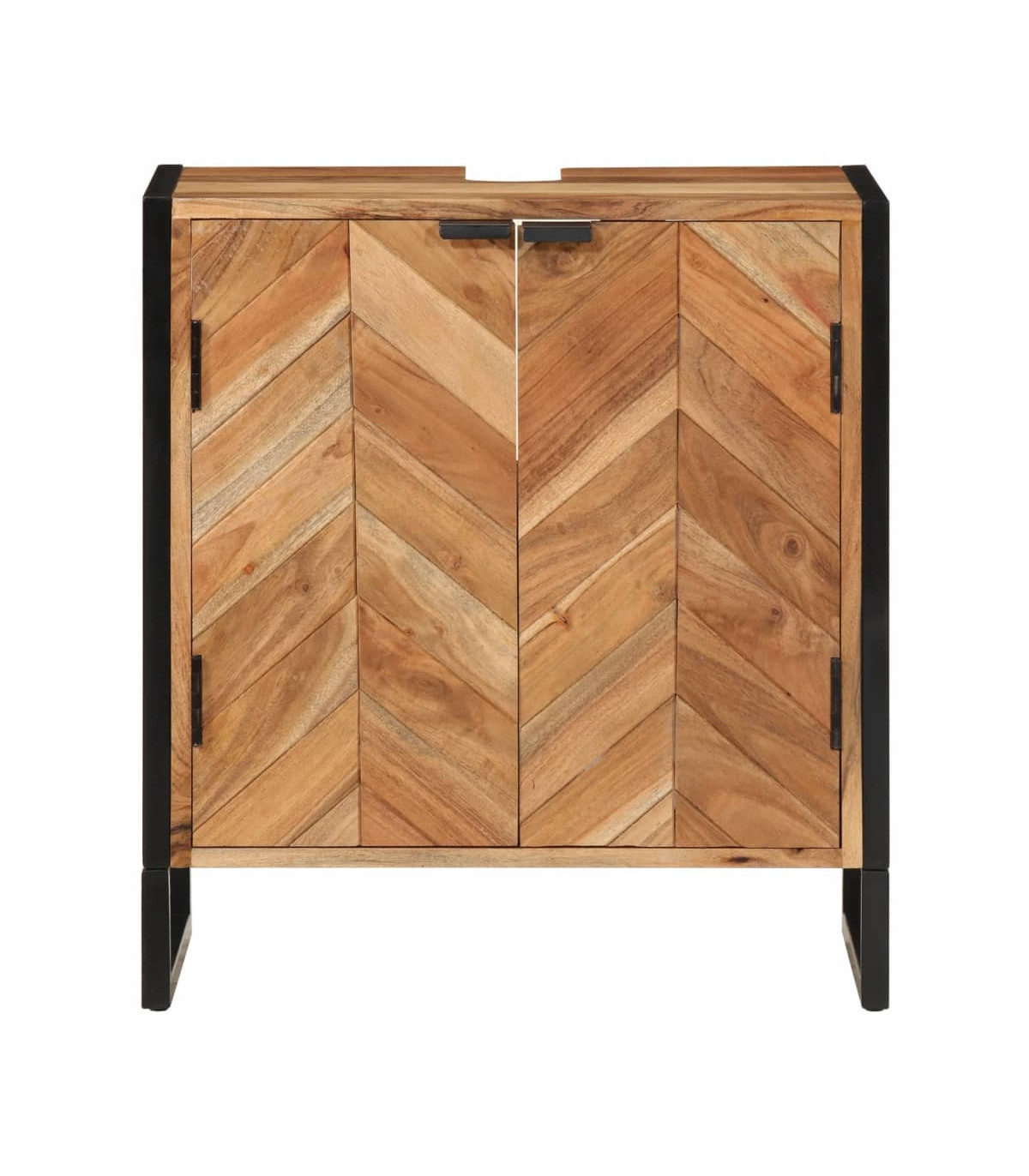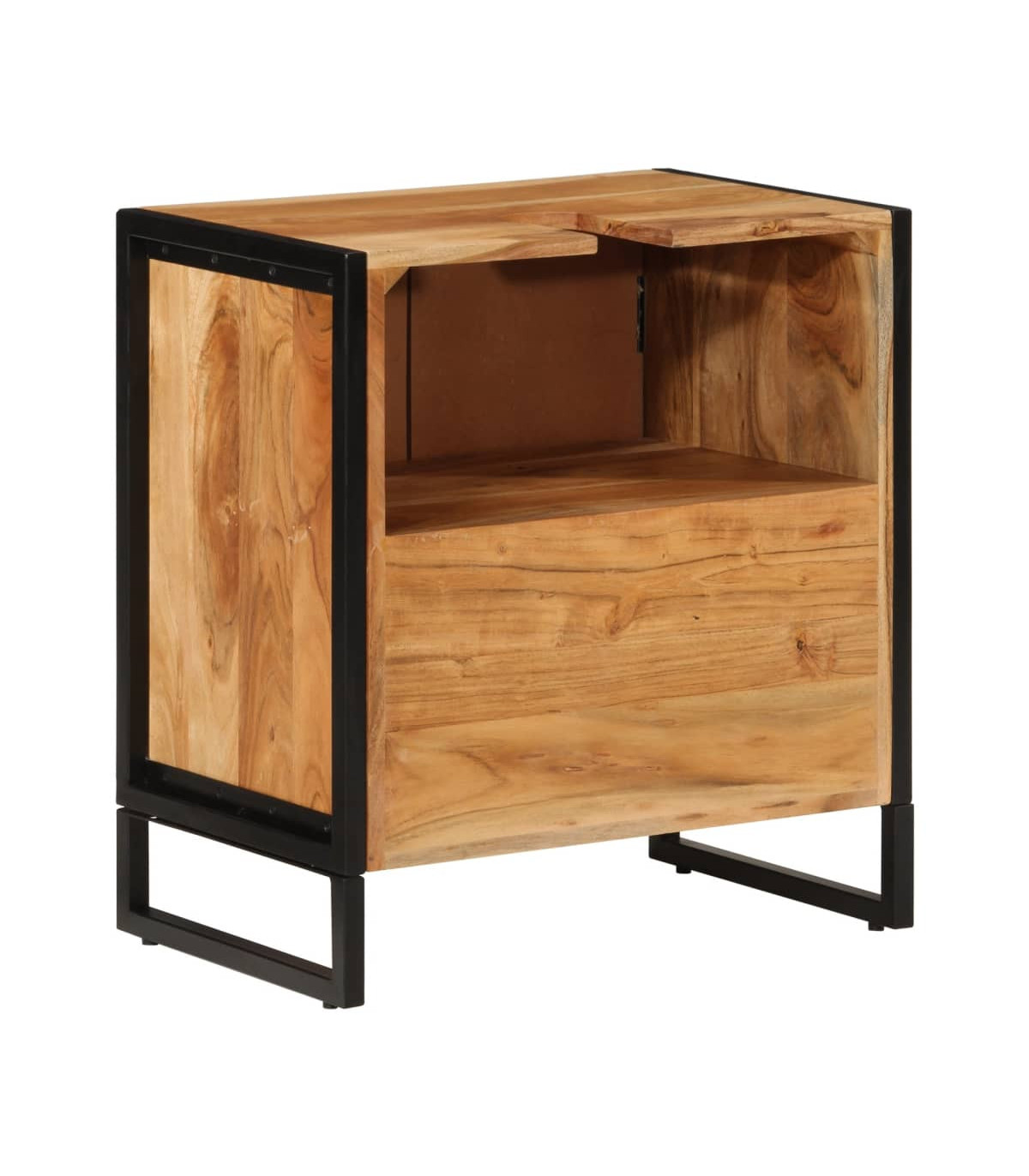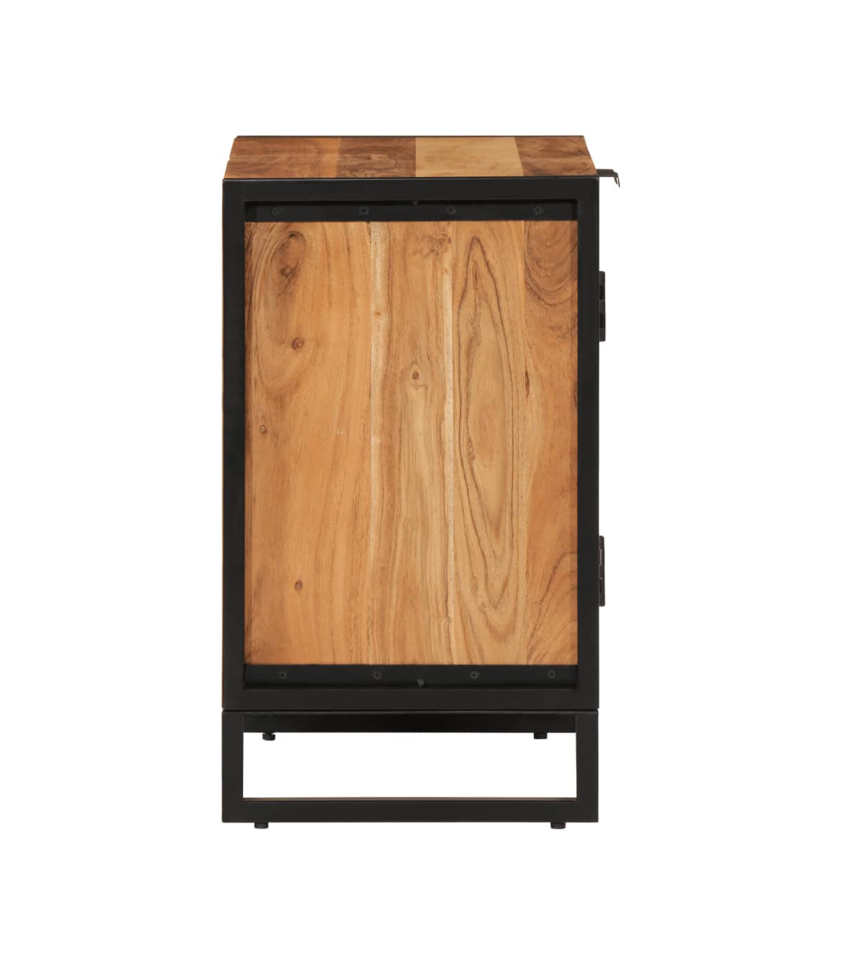 - Material: Solid acacia wood with a natural finish, black powder-coated iron