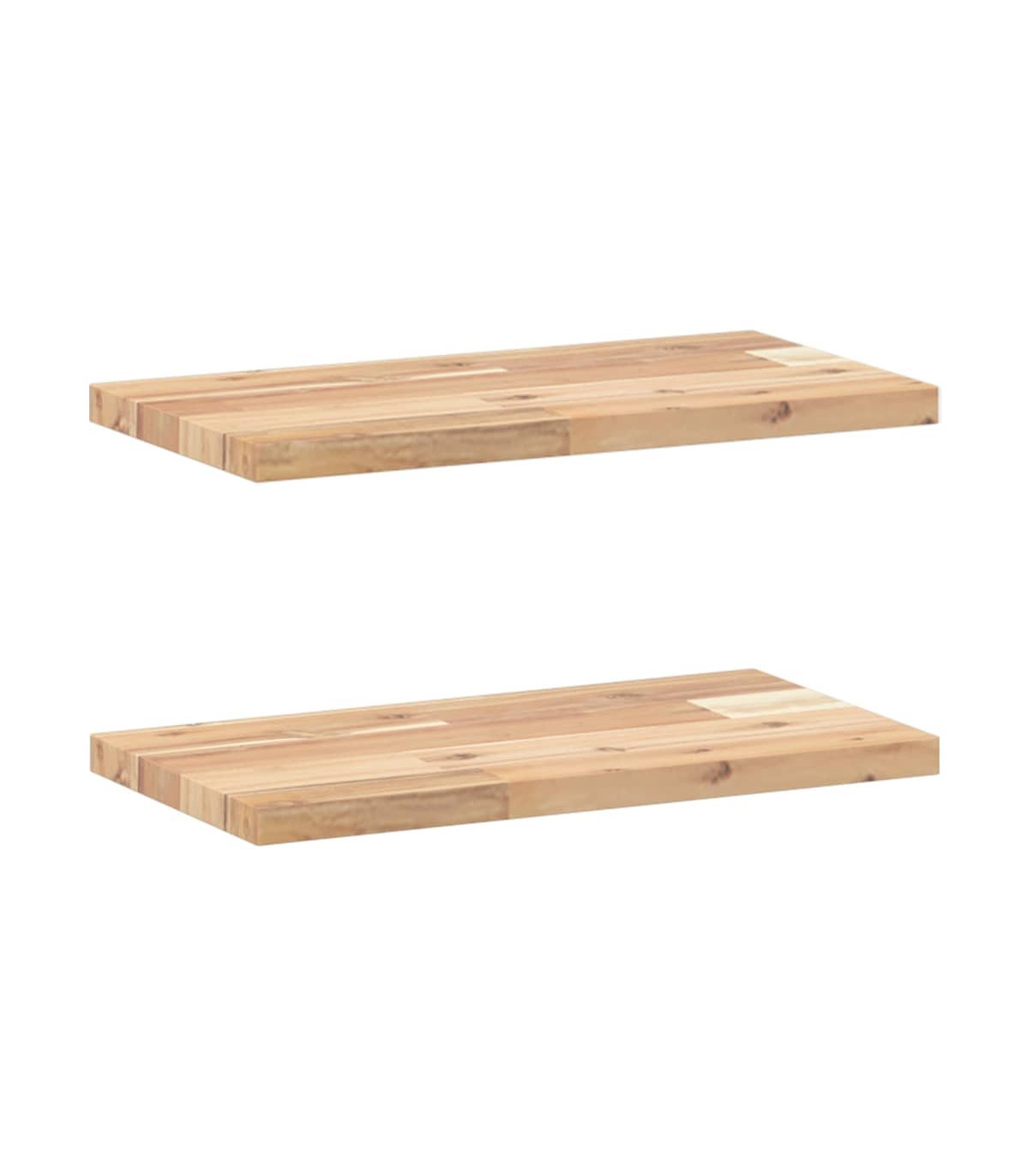 Transform your bare wall into a design accent and a practical, space-efficient storage area for your living space with these wooden floating shelves! Robust and stable material: Solid acacia wood is known for its strength and durability. Its diverse colours and unique grain patterns give it an attractive appearance. With excellent stability and resistance to weathering, it is ideal for crafting indoor and outdoor furniture.Untreated surface: This shelf board is made of untreated acacia wood, and you can keep its natural colour or customise it with paint or lacquer to suit your preference.Randomly DIY: You can arrange the shelves in a random pattern, like right-left, upper-down, or in a ladder-like design. By using more wall shelves, you can create unique and personalised patterns.Space saving: This floating shelf maximises unused wall space, converting it into a compact and efficient storage area.Wide applications: This versatile wall-mounted shelf can be used in various settings, such as kitchen, bathroom, living room, bedroom, study, garage, etc. Good to know:Each item is unique with variations in colours and grains. The delivery is random, ensuring the exclusivity and individuality of your product.The delivery includes wall shelves only. Screws and brackets are not included in the delivery.