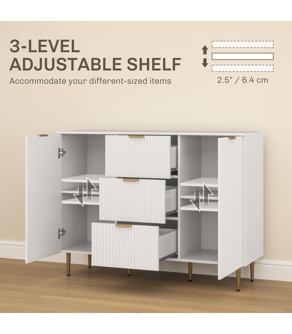 - Adjustable Shelf: Includes a 3-level adjustable shelf to accommodate various heights of items.