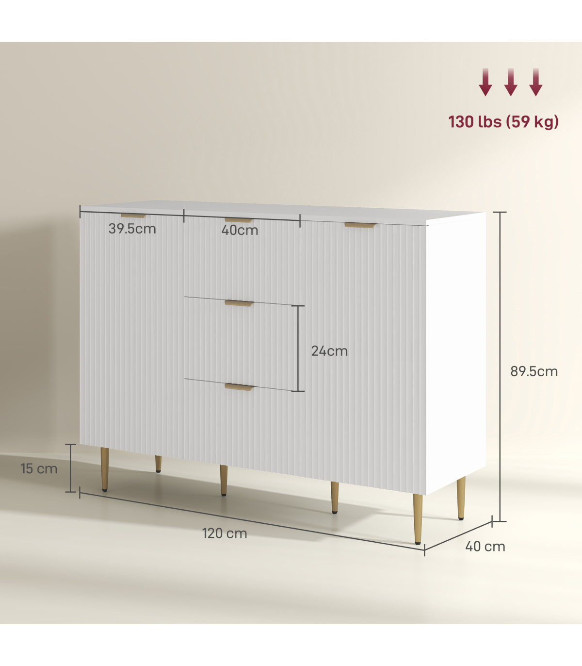 - Overall Dimensions: 120W x 40D x 89.5H cm