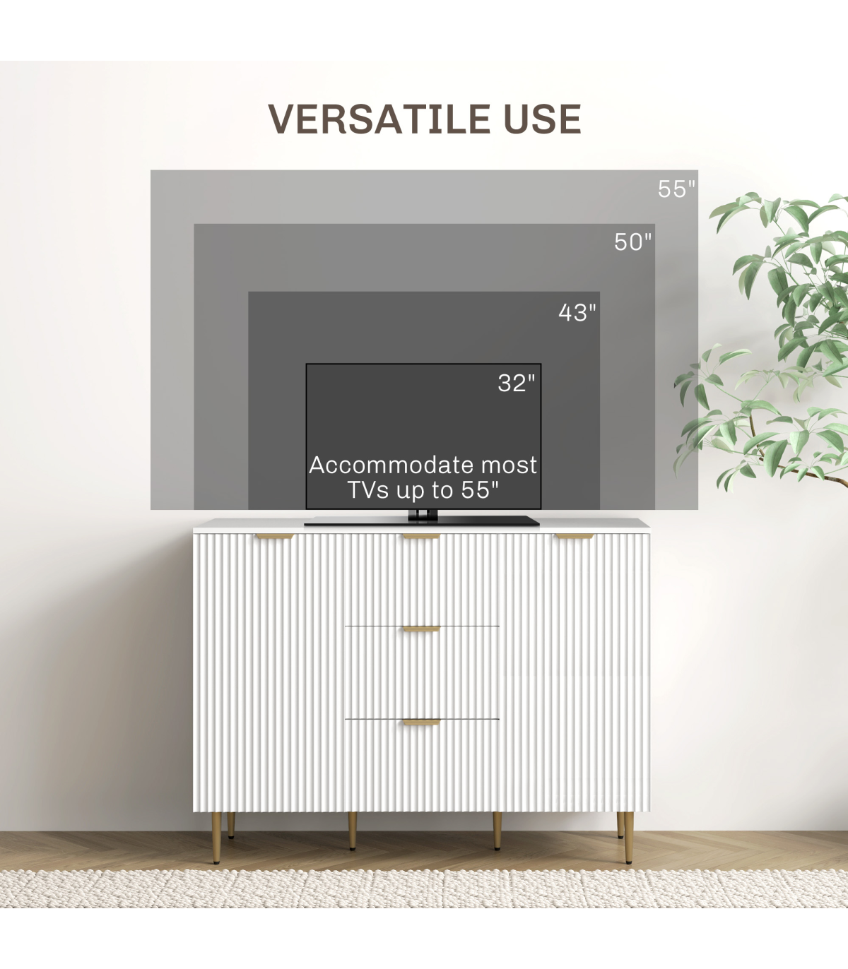 - Multi-Purpose Use: Functions as an all-purpose storage cabinet while also serving as a TV stand for TVs up to 55".