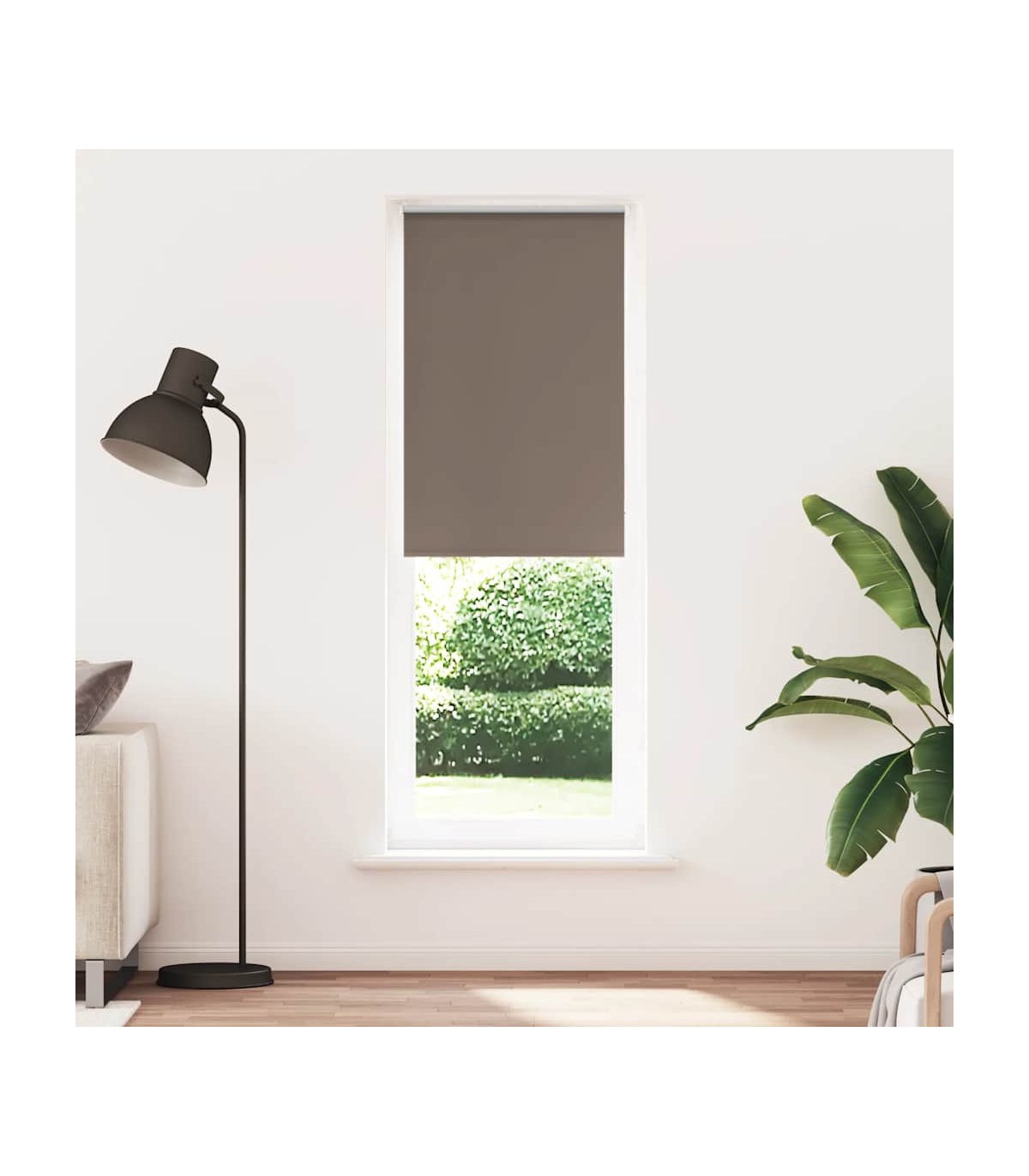 Elevate your room's style and functionality with this roller blind, providing privacy, light control, and heat regulation. Durable and low maintenance: Made from 100% polyester, the roller blind is built to last and resist wear and tear. They are also easy to clean, typically requiring light dusting or wiping with a damp cloth.Privacy and light control: Thanks to the blackout design, this roller blind provides privacy and partially blocks direct sunlight so that you can regulate the indoor temperature according to your needs.Multiple mounting methods: You can attach the roller blind to the wall or window with screws or without drilling using clamping brackets, depending on your needs. Clamping brackets for window frame rebate thickness between 1,6 and 2,5 cm.Child safety and adjustability: The roller blind includes a chain connector that makes it easy to adjust the height according to your needs, and it also has a cord clip to add child safety.Wide applications: This versatile roller blind is suitable for homes, offices, cafes, office buildings, and so on. Warning: Keep cords out of the reach of young children. Cords may become wrapped around a child’s neck. Good to know:Before buying blinds, start by measuring your window glass. Just a friendly tip: the fabric is a bit narrower than the total width, including the brackets.To make sure your new blinds provide complete coverage, just add 4,3 cm to the width of the window glass when calculating what to order.