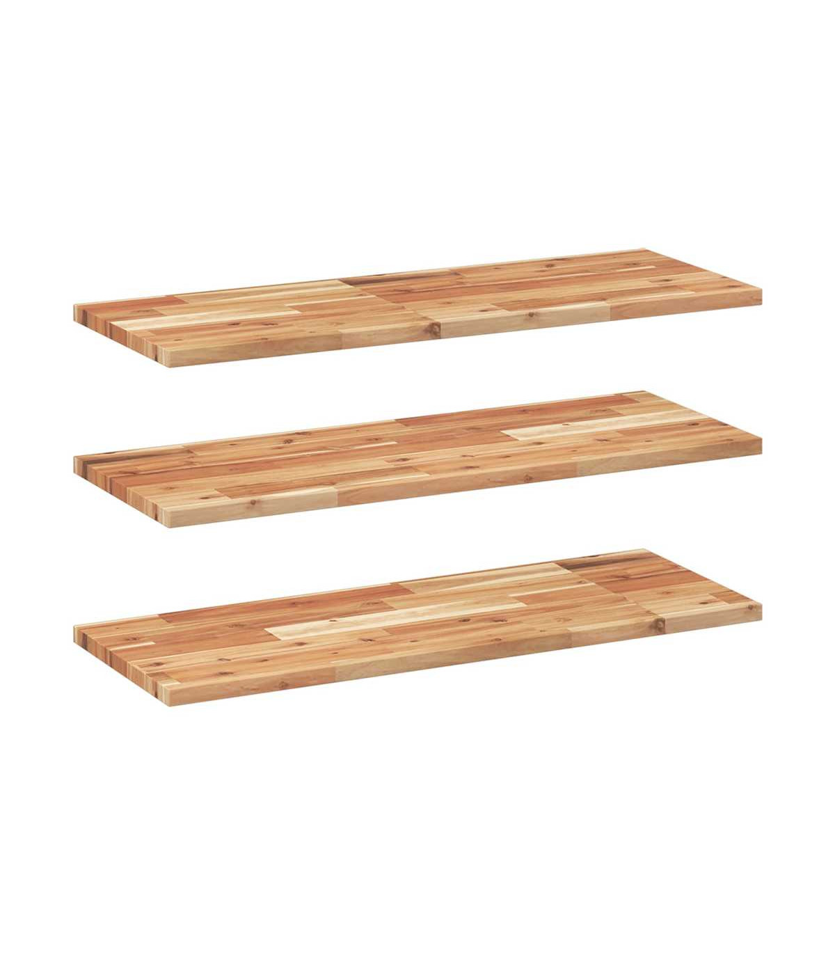 Transform your bare wall into a design accent and a practical, space-efficient storage area for your living space with these wooden floating shelves! Robust and stable material: Solid acacia wood is known for its strength and durability. Its diverse colours and unique grain patterns give it an attractive appearance. With excellent stability and resistance to weathering, it is ideal for crafting indoor and outdoor furniture.Oil-finished surface: This shelf board is made of acacia wood with an oil finish that makes it more resistant to moisture and water damage, while also preserving its unique character.Randomly DIY: You can arrange the shelves in a random pattern, like right-left, upper-down, or in a ladder-like design. By using more wall shelves, you can create unique and personalised patterns.Space saving: This floating shelf maximises unused wall space, converting it into a compact and efficient storage area.Wide applications: This versatile wall-mounted shelf can be used in various settings, such as kitchen, bathroom, living room, bedroom, study, garage, etc. Good to know:Each item is unique with variations in colours and grains. The delivery is random, ensuring the exclusivity and individuality of your product.The delivery includes wall shelves only. Screws and brackets are not included in the delivery.It is recommended to reapply an oil finish to maintain its quality and appearance at least once a year.