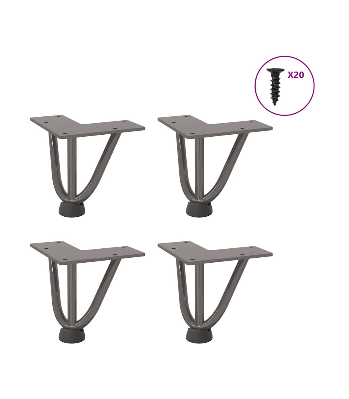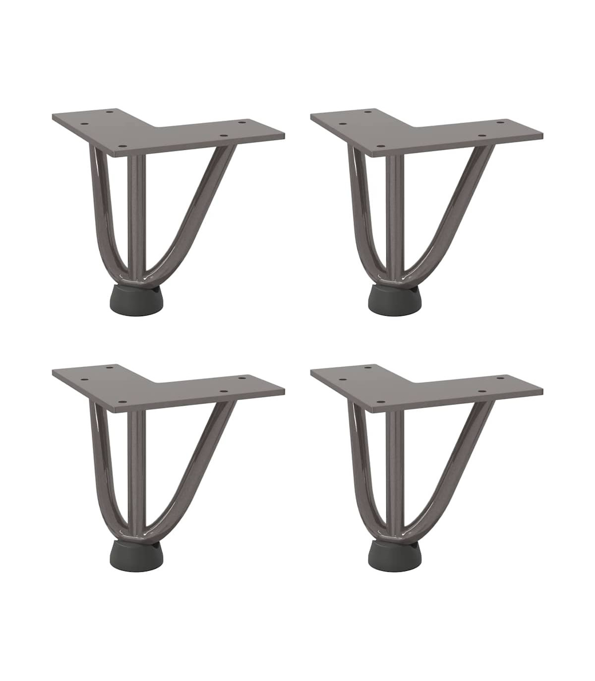 These hairpin table legs combine form and function. It's an ideal choice for customising your coffee table. Durable material: This hairpin table leg is made of solid powder-coated steel, making it sturdy and long-lasting enough to support a heavy tabletop.Practical design: This hairpin table leg includes adjustable foot levellers, ensuring stability even on uneven floors and minimising floor scratches. Furthermore, the bracket incorporates pre-drilled holes and delivery-included screws for attaching the leg to the tabletop (not included), simplifying the assembly process.Modern aesthetics: The hairpin table leg offers a sleek and contemporary look. Its clean lines and geometric design enhance the overall appearance of the furniture. Good to know:The delivery only contains table legs, the tabletop is not included.