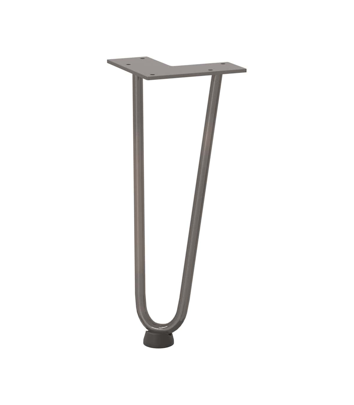 These hairpin table legs combine form and function. It's an ideal choice for customising your coffee table. Durable material: This hairpin table leg is made of solid powder-coated steel, making it sturdy and long-lasting enough to support a heavy tabletop.Practical design: This hairpin table leg includes adjustable foot levellers, ensuring stability even on uneven floors and minimising floor scratches. Furthermore, the bracket incorporates pre-drilled holes and delivery-included screws for attaching the leg to the tabletop (not included), simplifying the assembly process.Modern aesthetics: The hairpin table leg offers a sleek and contemporary look. Its clean lines and geometric design enhance the overall appearance of the furniture. Good to know:The delivery only contains table legs, the tabletop is not included.