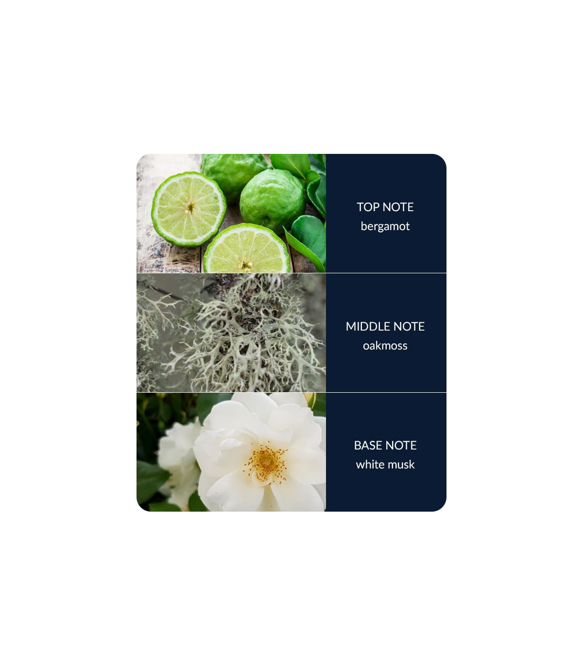 The Ellipse candle offers a modern feel through its stylish jar shape and coloured glass. With two wicks for even more fragrance enjoyment and an intricately detailed embossed lid, this pretty candle makes a stylish addition to any home. The woody earthiness of bergamot and oakmoss is subtly subdued by the addition of refreshing citrus and a sprinkle of white pepper all brought together on a base of white musk. Natural Soy Wax Renewable, sustainable, product kinder to the environment. Burn Time: up to 40 hours Weight: 220g