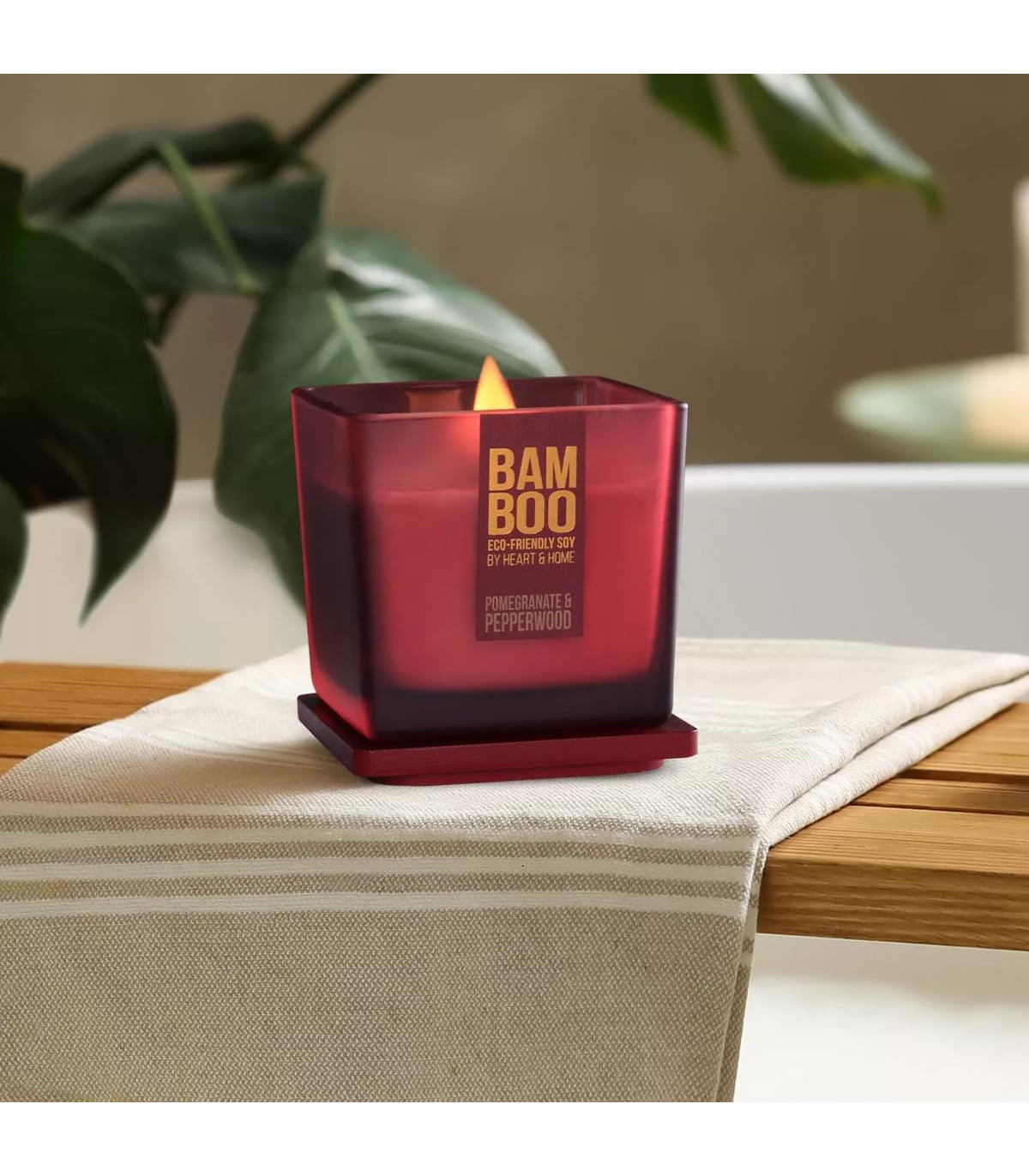 Bamboo Pomegranate & Pepperwood Large Soy Candle 40 Hours Burn - Crackling Wick with fragrance notes Top Note: Promegranate Middle Note: Patchouli Base Note: Spicy Pepper