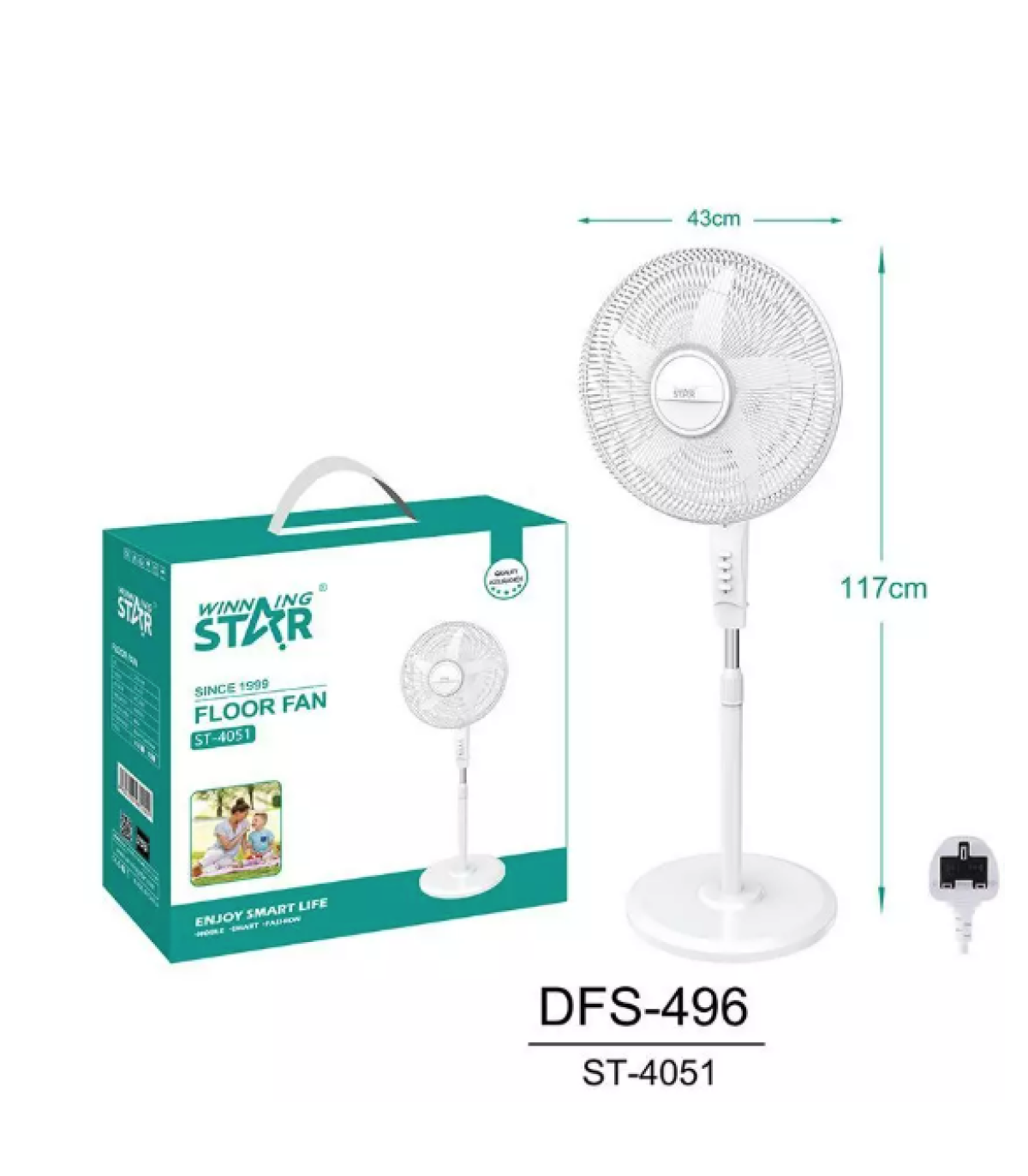 Winning Star 16" Pedestal Round Base Fan with 5 Blades