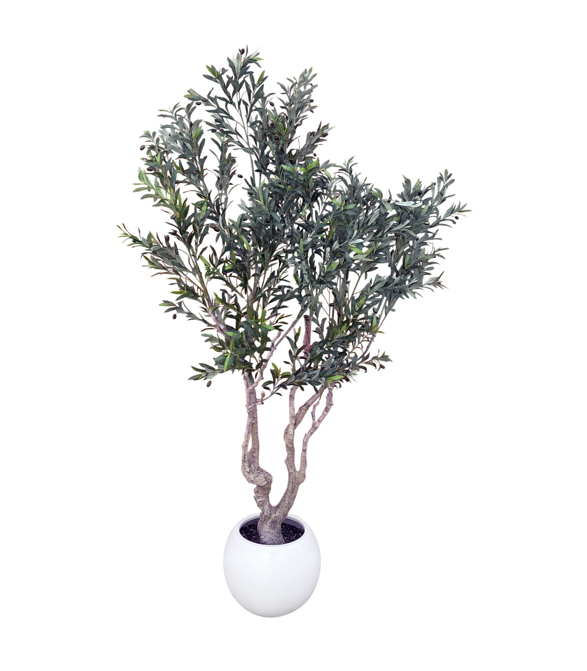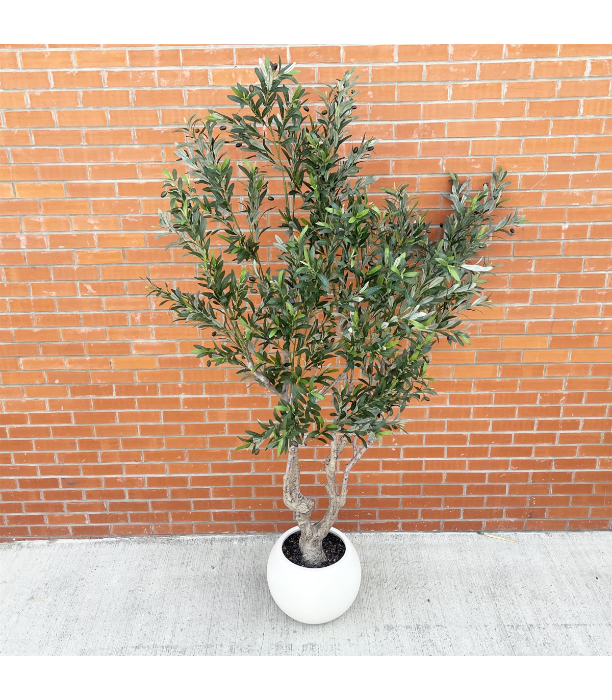 This olive tree is one of the largest in our range - it stands an incredible 250cm tall when arranged as shown in our photos. Minor, straightforward assembly is required for this product as branches slot onto the main trunk. It comes potted ready to display in a stunning decorative planter which closely resembles stone but is actually plastic. This tree makes an unbeatable statement piece and is suitable for both residential and commercial applications. The stems are wired and can be shaped to fit your space, as we have it arranged the tree is 160cm wide.
