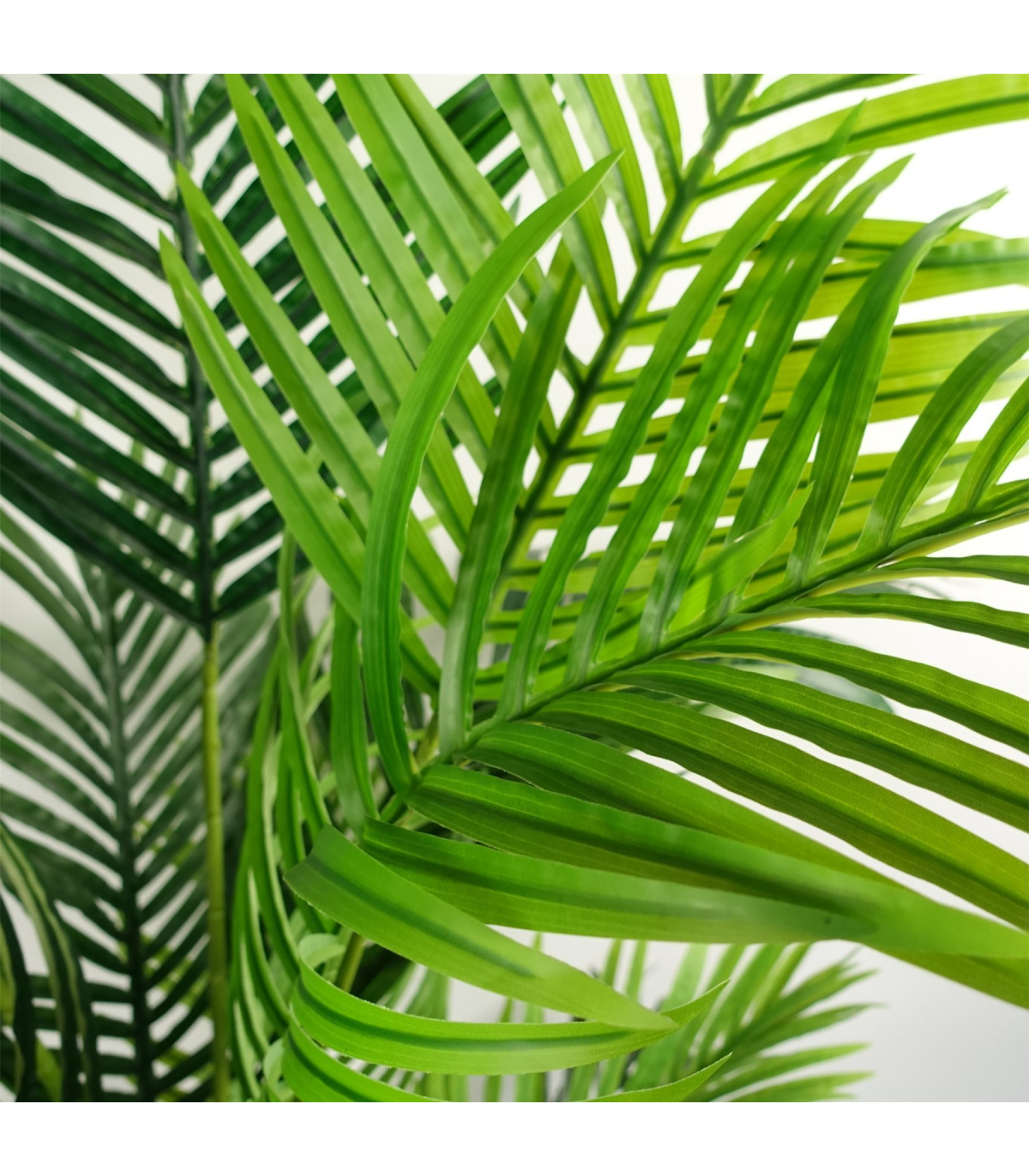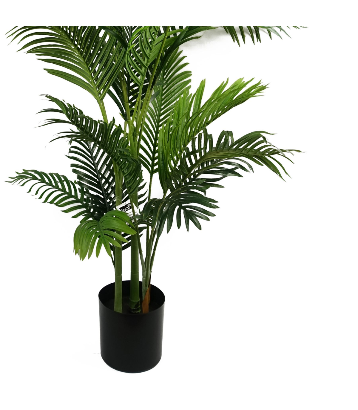 Extra large artificial palm tree which is ideal for home or office use. This stands 180cm x 100cm x 100cm tall as shown in our photos and the stems are wired so you can arrange this to suit your space. It comes potted in a plain black plastic pot measuring 19cm (w) x 18cm (h). Comes with separate metal planter for display, items can be used together or separately.