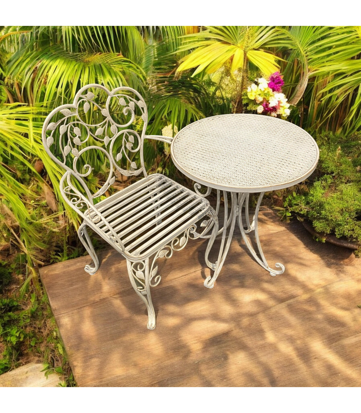 This bistro set is the ideal garden accessory for relaxing on during the spring and summer months, Table and 2 chairsTABLE- L-60CM W-60CM H-70CM, CHAIR-L-41CM W-51CM H-93CM