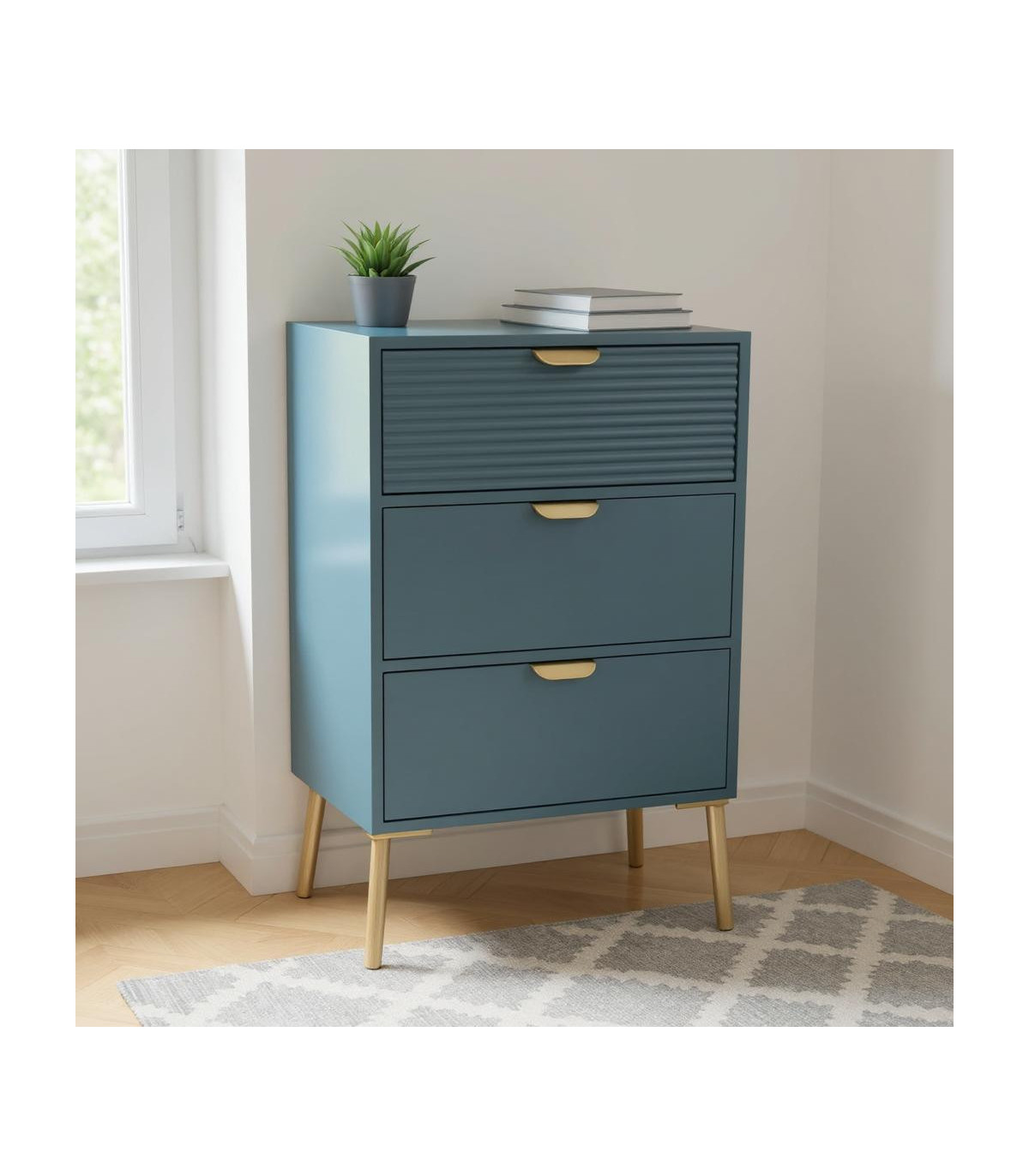 75CM BLUE WOODEN 3 DRAWER CHEST OF DRAWER
