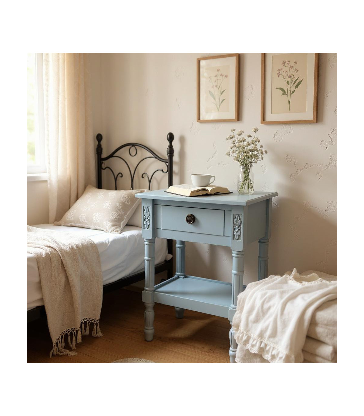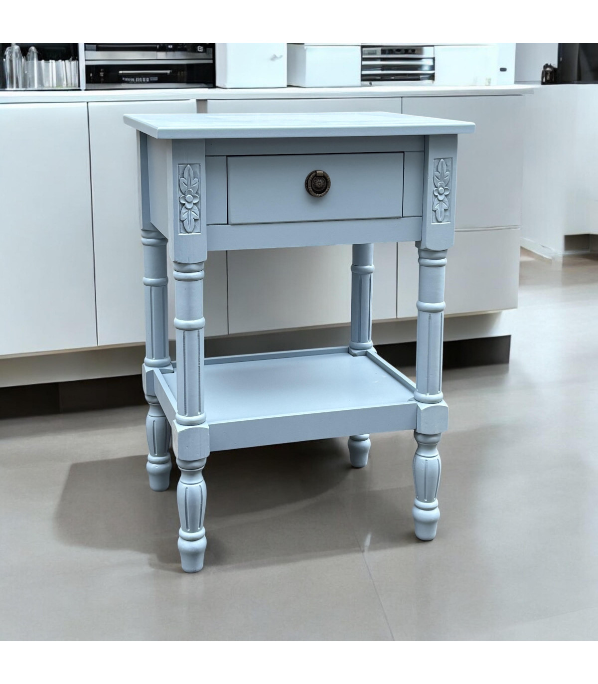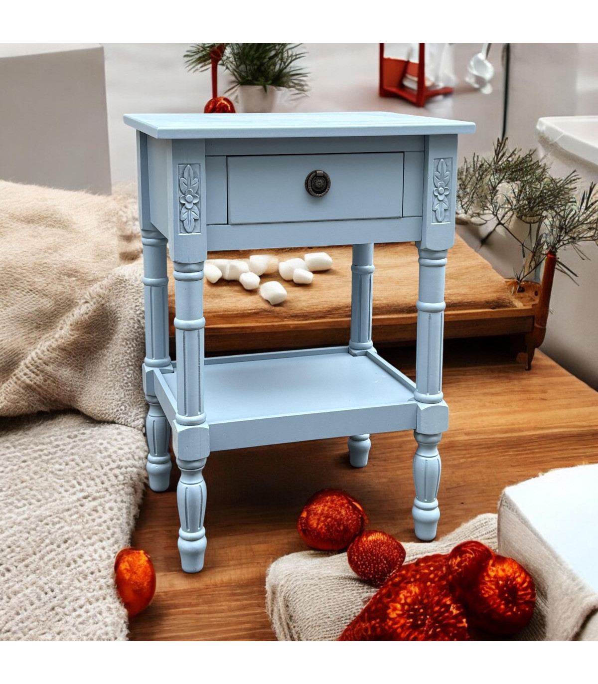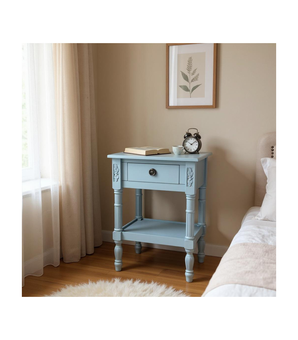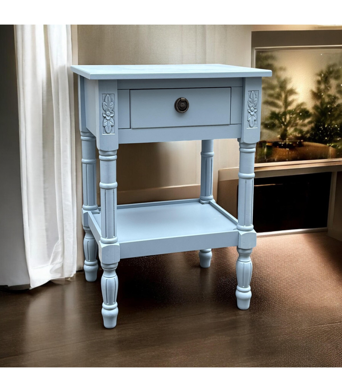 This beautiful table stands perfectly next to your bed. The table features a drawer for storage, Hand FinishedCan also be used as a bedside table