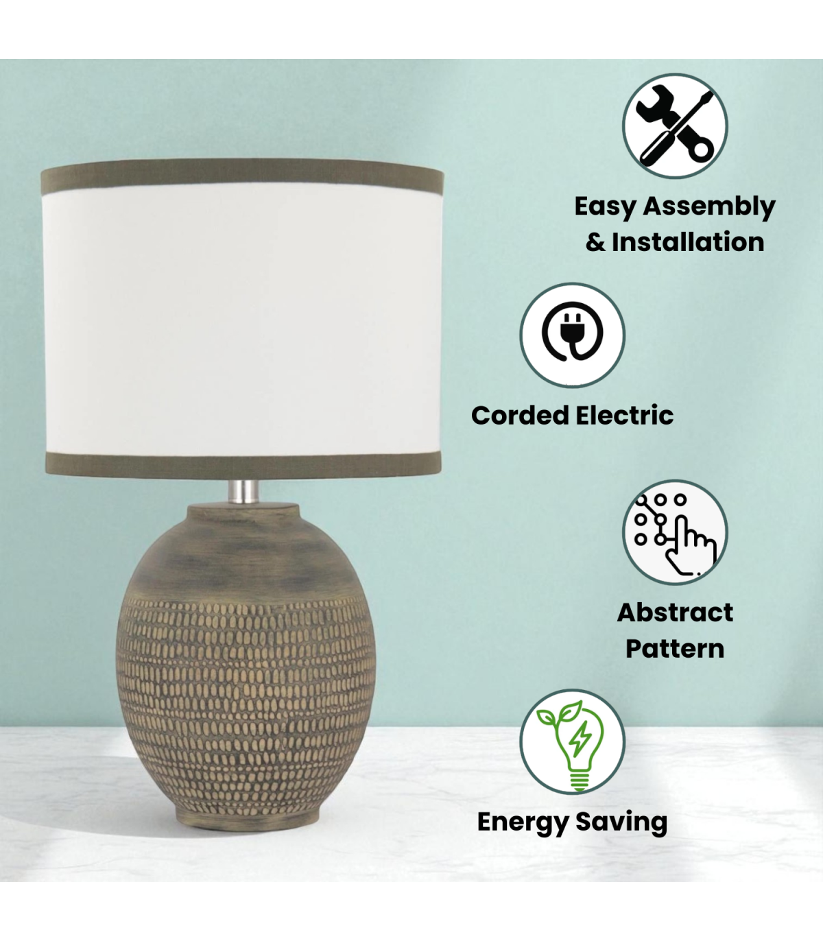 A traditional design ceramic table lamp base and shade. The lamp is individually switched by an inline rocker switch and is double insulated to allow for safe use without need of an earth wire. Great for lighting in any setting and ideal in a living room or bedroom., In Line switchHigh Quality Shade