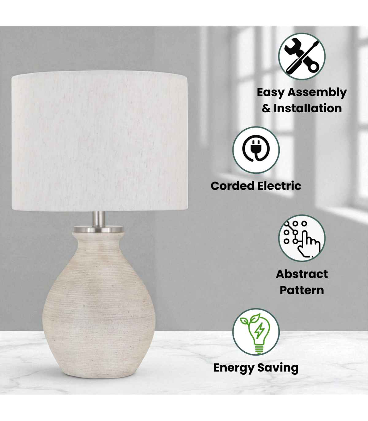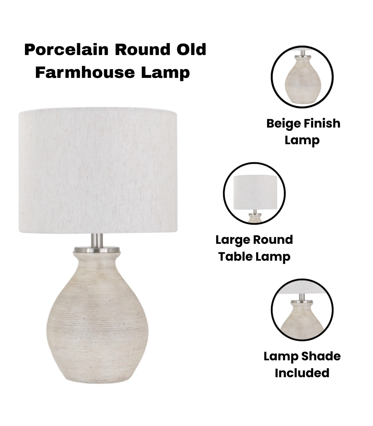 A traditional design ceramic table lamp base and shade. The lamp is individually switched by an inline rocker switch and is double insulated to allow for safe use without need of an earth wire. Great for lighting in any setting and ideal in a living room or bedroom., In Line switchHigh Quality Shade