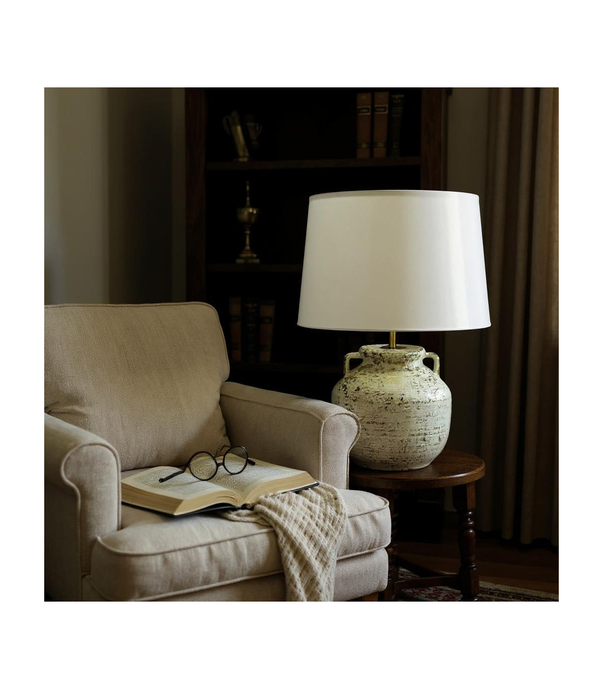 A traditional design ceramic table lamp base and shade. The lamp is individually switched by an inline rocker switch and is double insulated to allow for safe use without need of an earth wire. Great for lighting in any setting and ideal in a living room or bedroom., In Line switchHigh Quality Shade