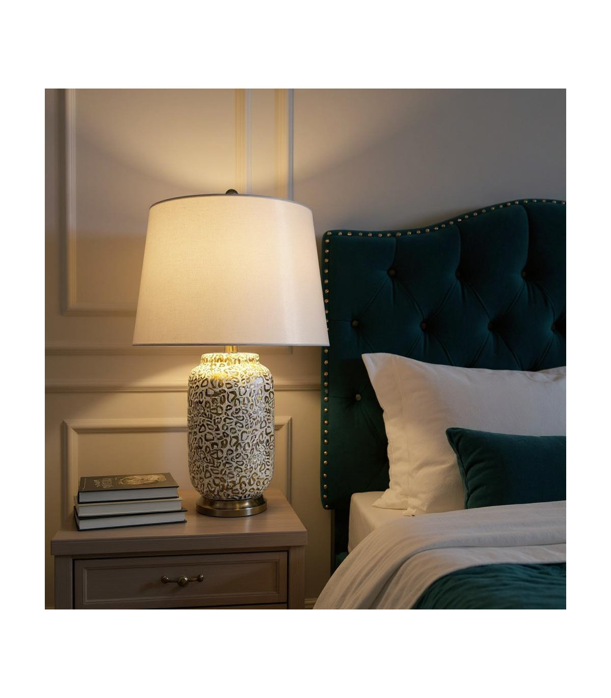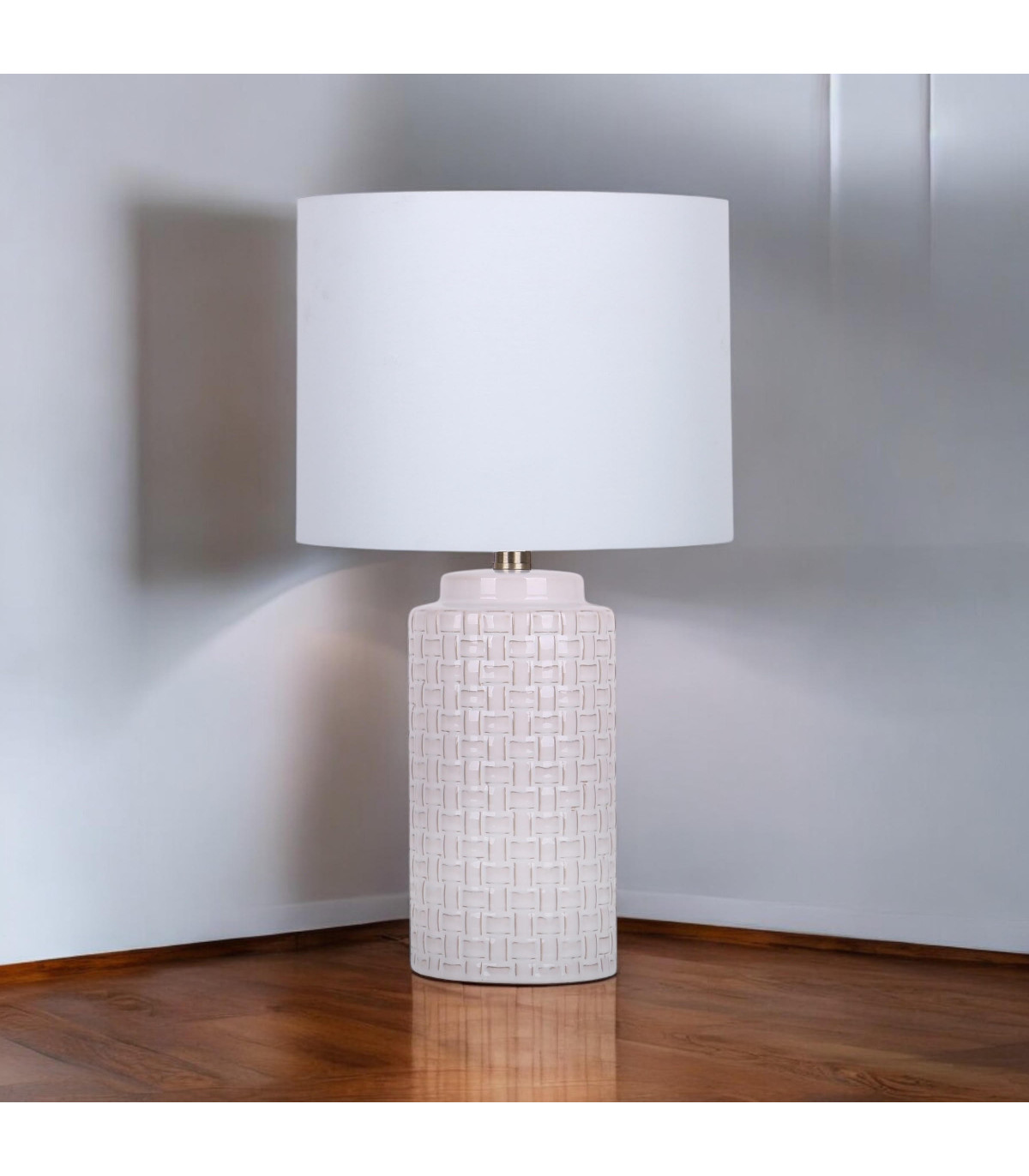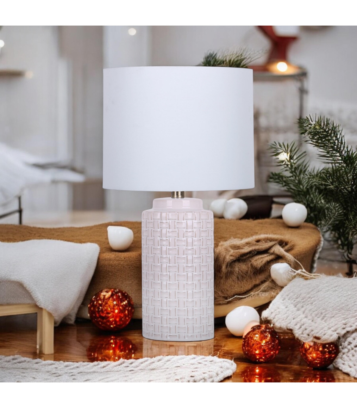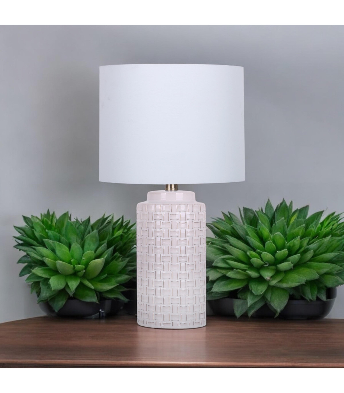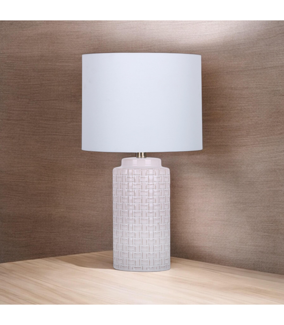 A traditional design ceramic table lamp base and shade. The lamp is individually switched by an inline rocker switch and is double insulated to allow for safe use without need of an earth wire. Great for lighting in any setting and ideal in a living room or bedroom., In Line switchHigh Quality Shade