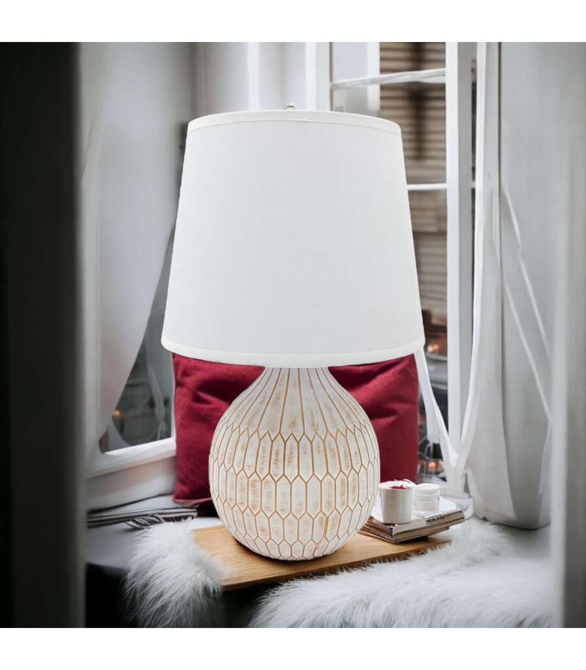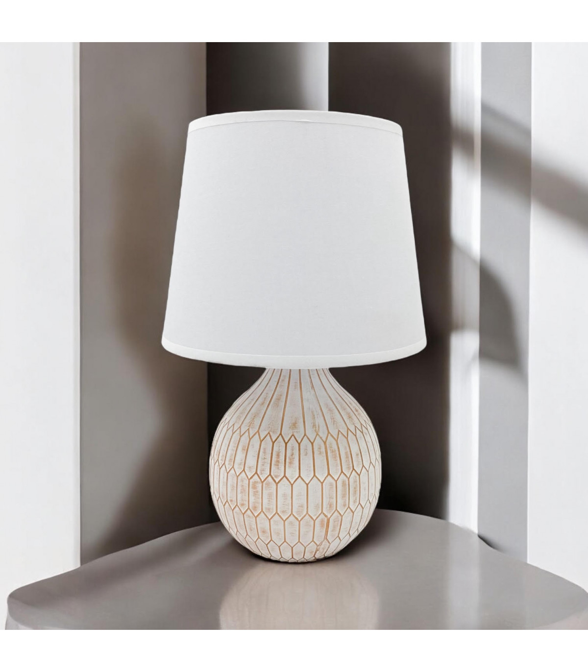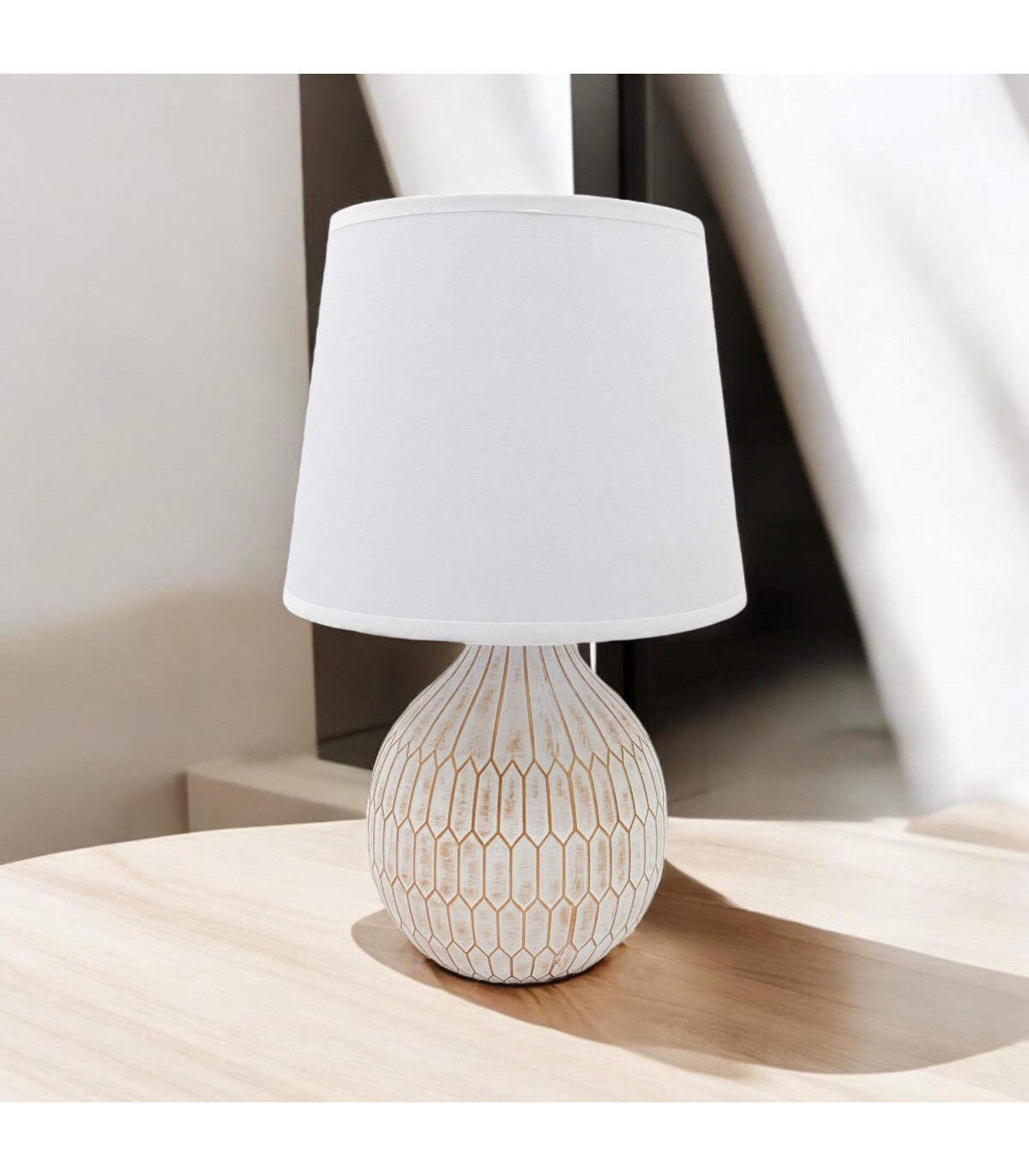 A traditional design table lamp base and shade. The lamp is individually switched by an inline rocker switch and is double insulated to allow for safe use without need of an earth wire. Great for lighting in any setting and ideal in a living room or bedroom., In Line switchHigh Quality Shade
