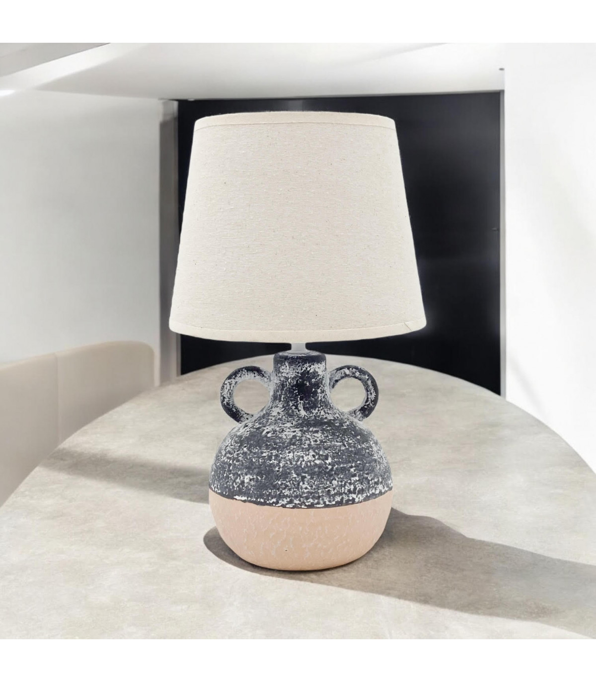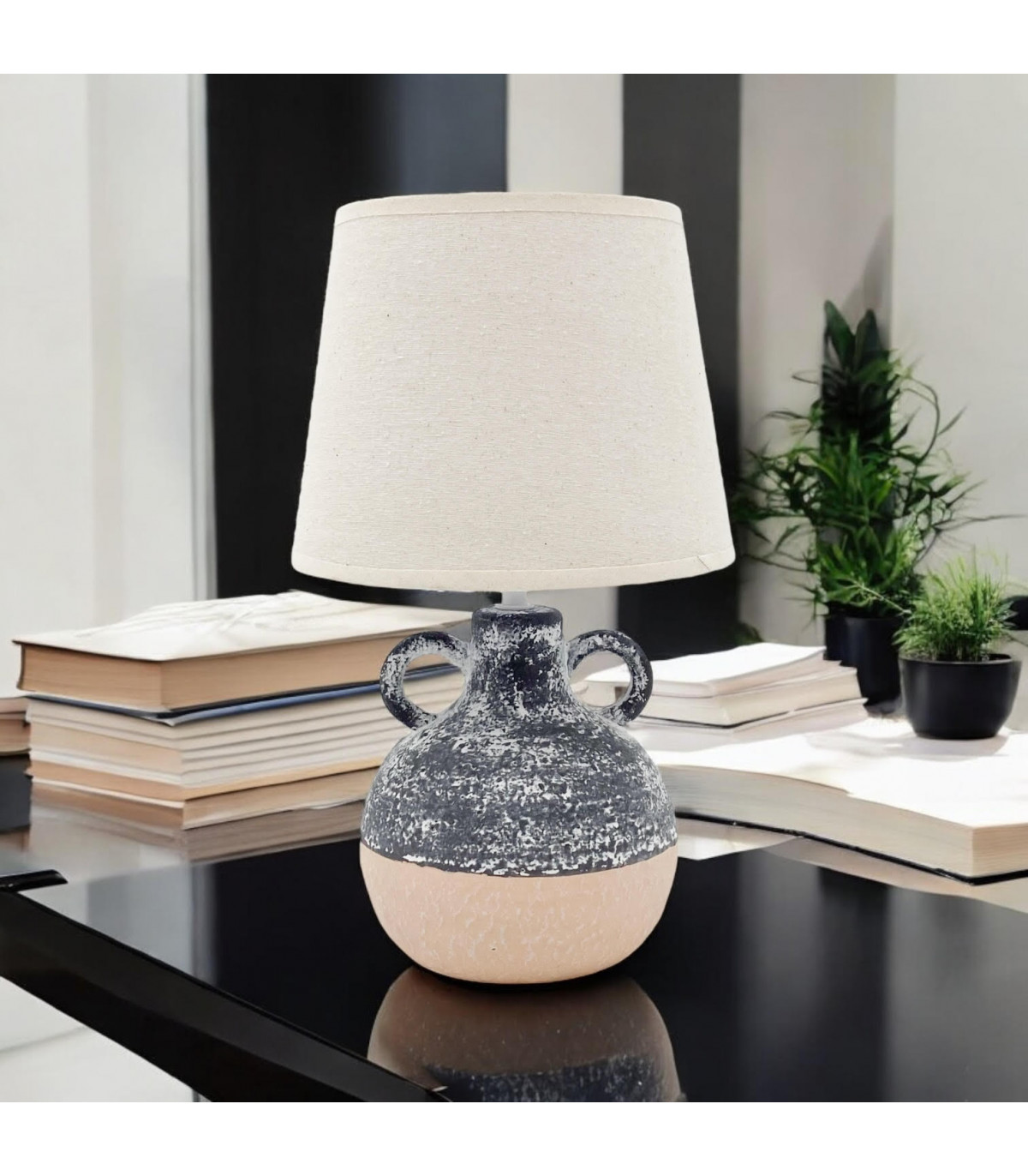 A traditional design table lamp base and shade. The lamp is individually switched by an inline rocker switch and is double insulated to allow for safe use without need of an earth wire. Great for lighting in any setting and ideal in a living room or bedroom., In Line switchHigh Quality Shade