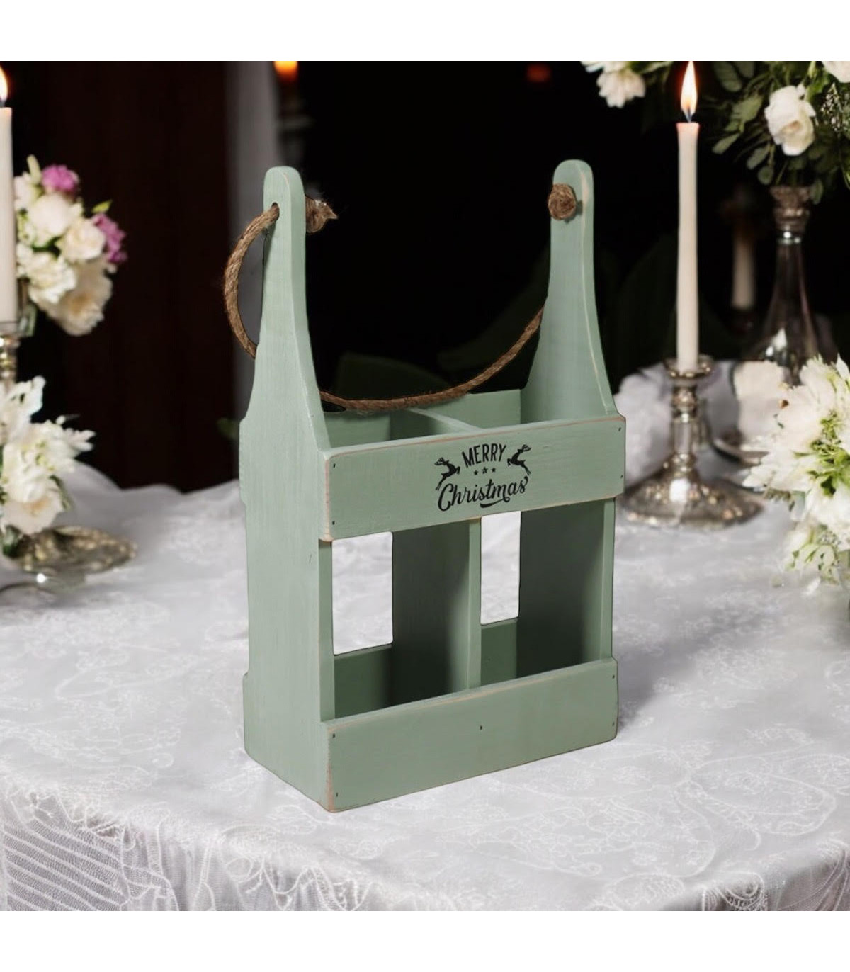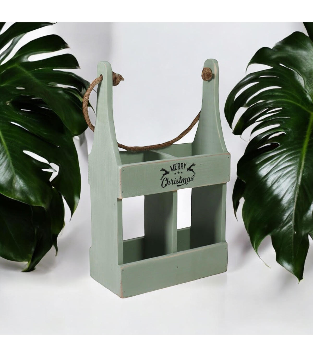 39CM RUSTIC GREEN 2 BOTTLE WINE HOLDER
