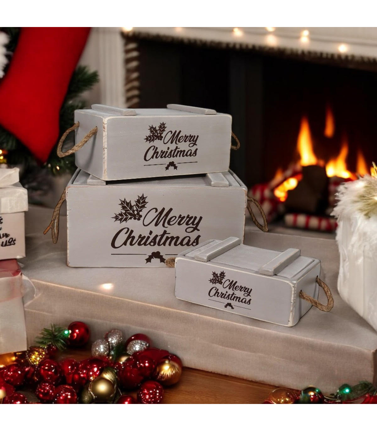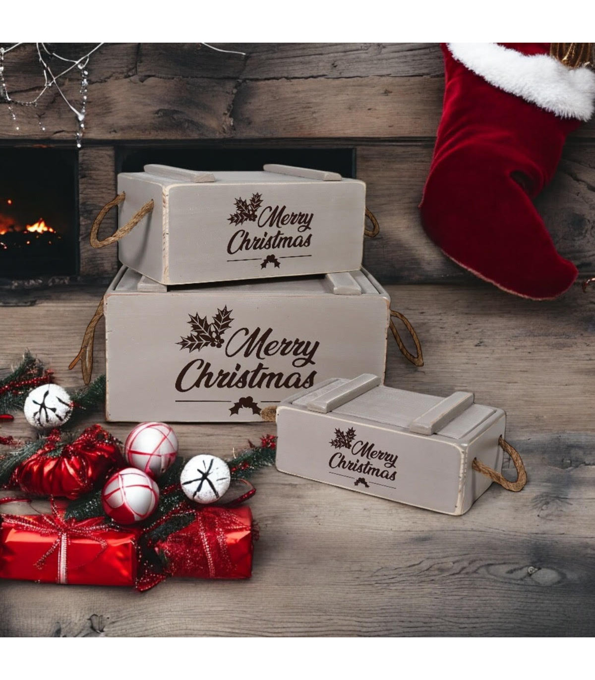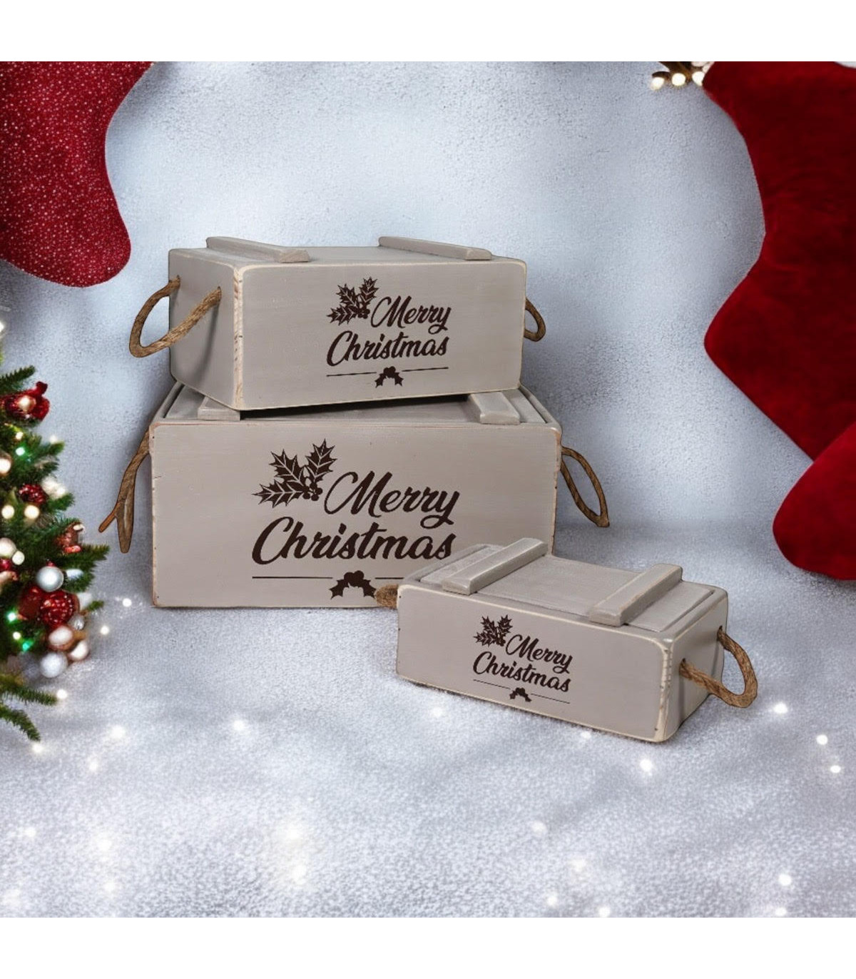 A beautiful set of Christmas boxes for a lovely tradition to be reused every year on the night before Christmas. The wooden box is supplied ready to fill with lots of festive treats and goodies to delight your little one with a special delivery from Santa!, Set of 3Hand Finished