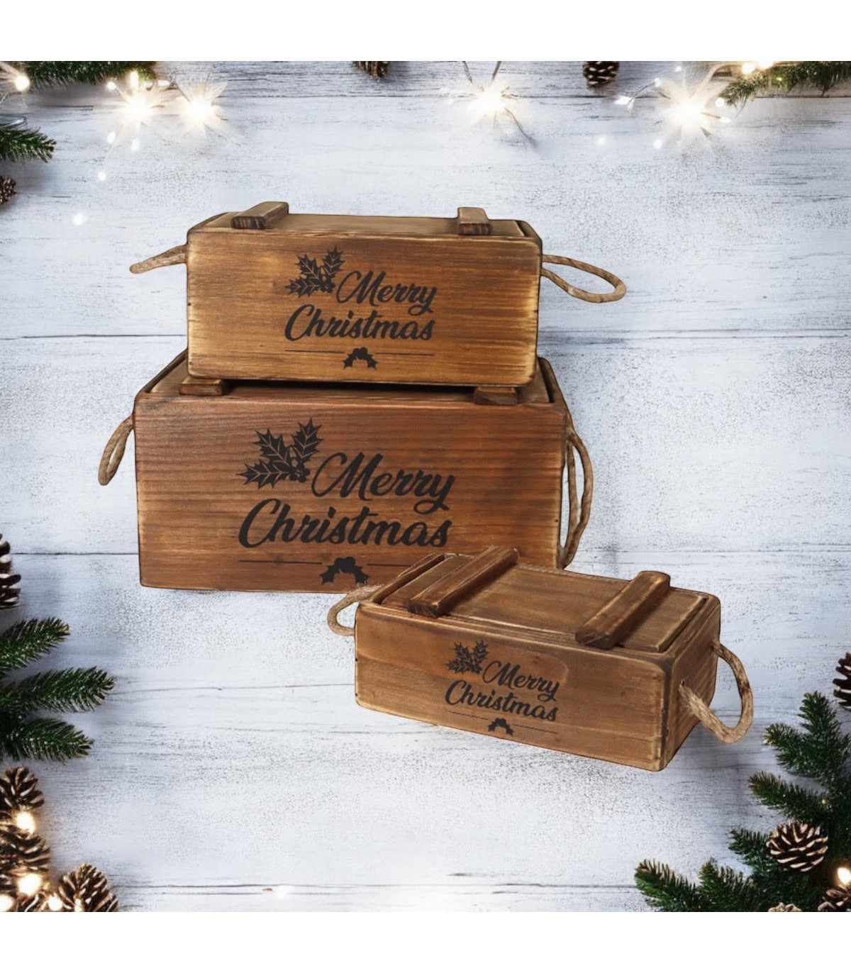 A beautiful set of Christmas boxes for a lovely tradition to be reused every year on the night before Christmas. The wooden box is supplied ready to fill with lots of festive treats and goodies to delight your little one with a special delivery from Santa!, Set of 3Hand Finished