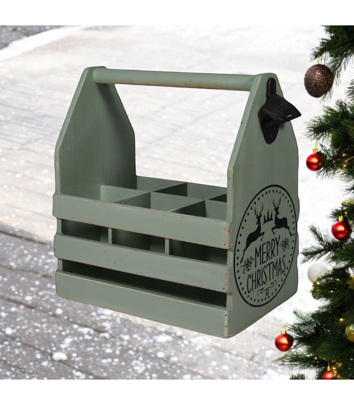 RUSTIC GREEN 6 BOTTLE HOLDER WITH OPENER