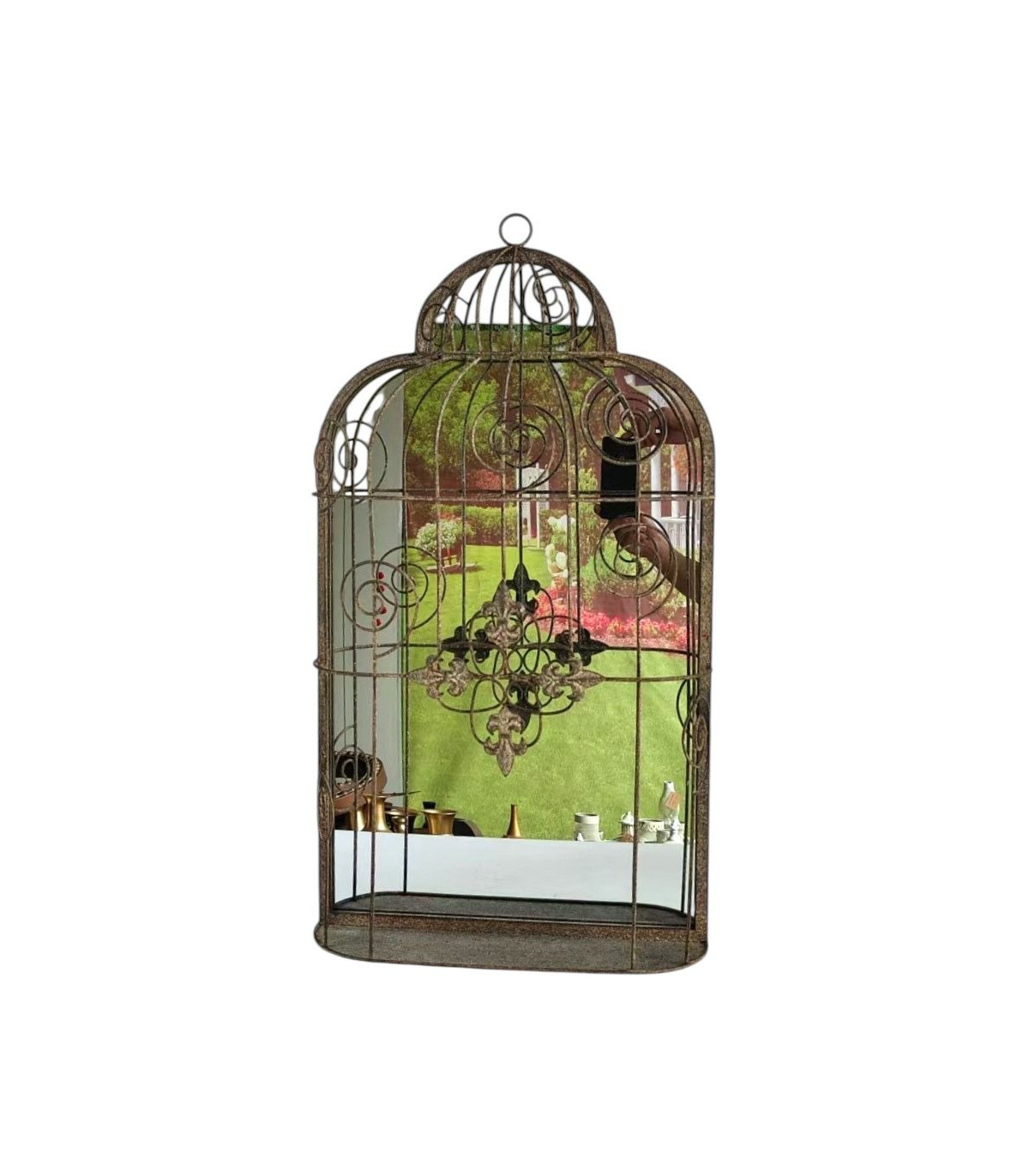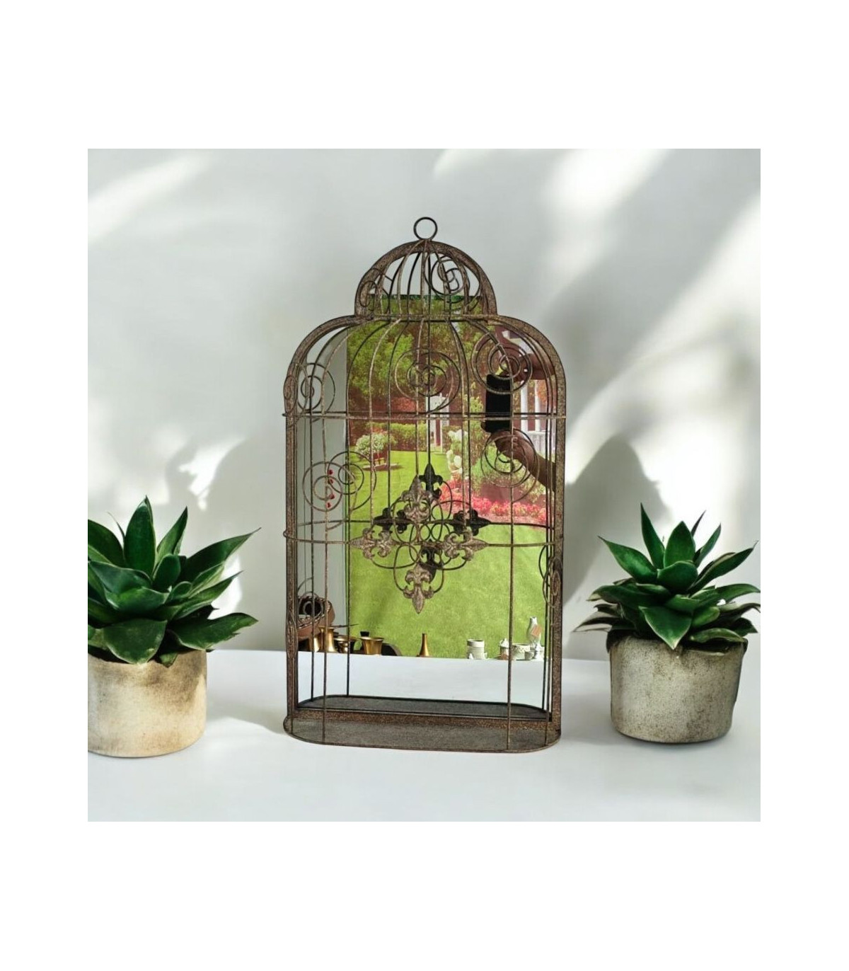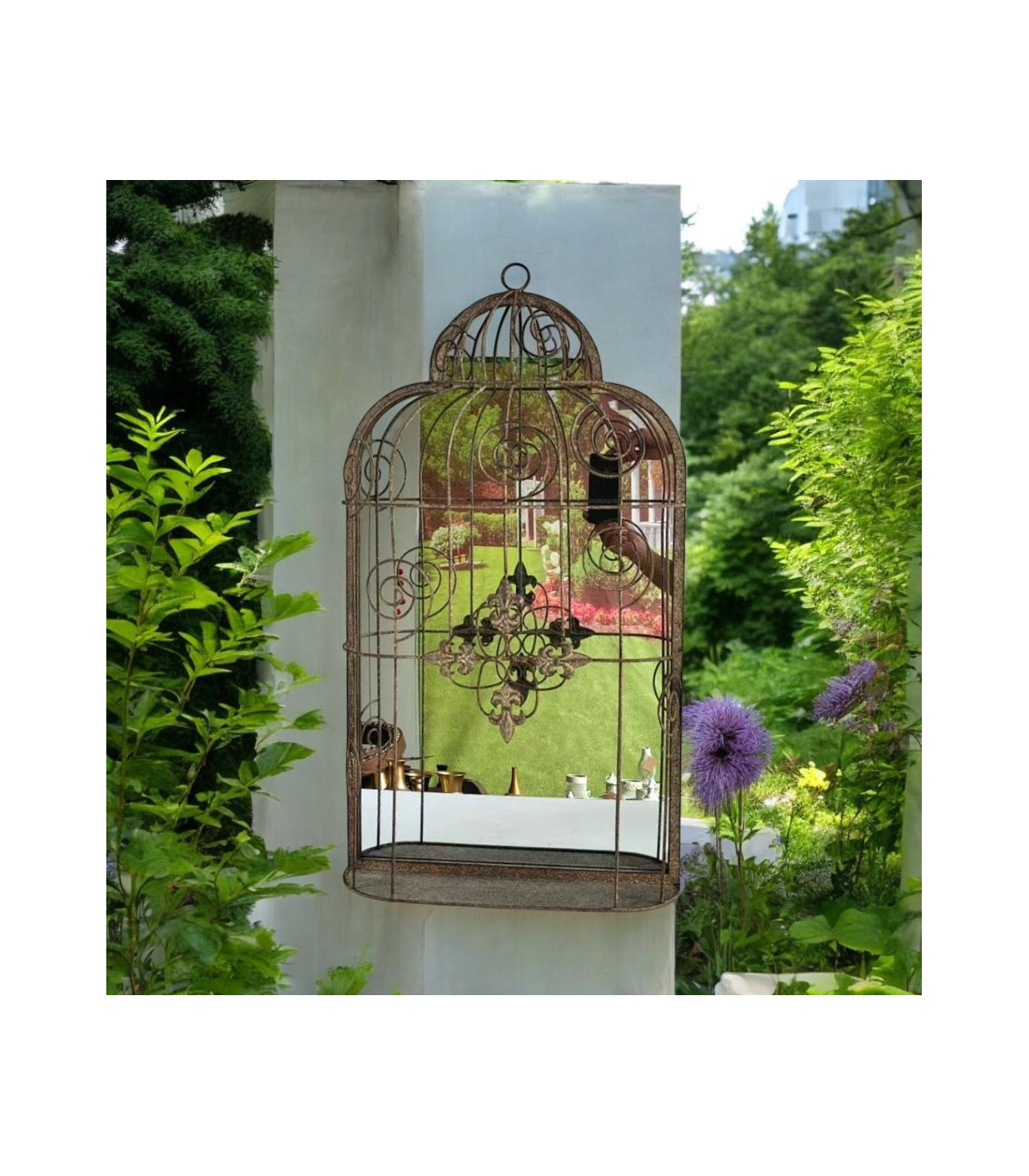 This metal cage with mirror is the perfect decorative garden accessory to bring some antique character to your outdoor space., Indoor or outdoor useDistressed Metal, Easy to hang