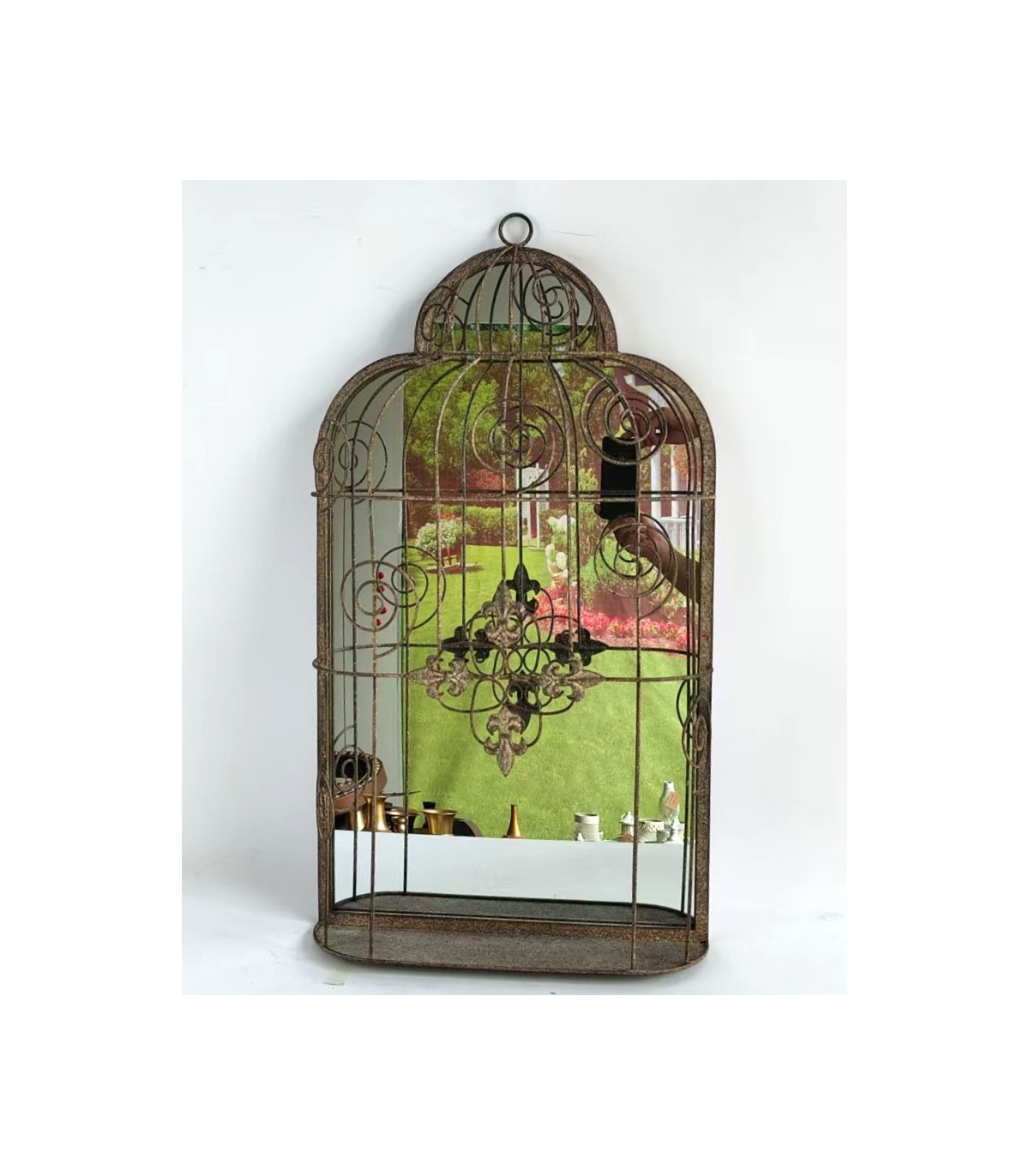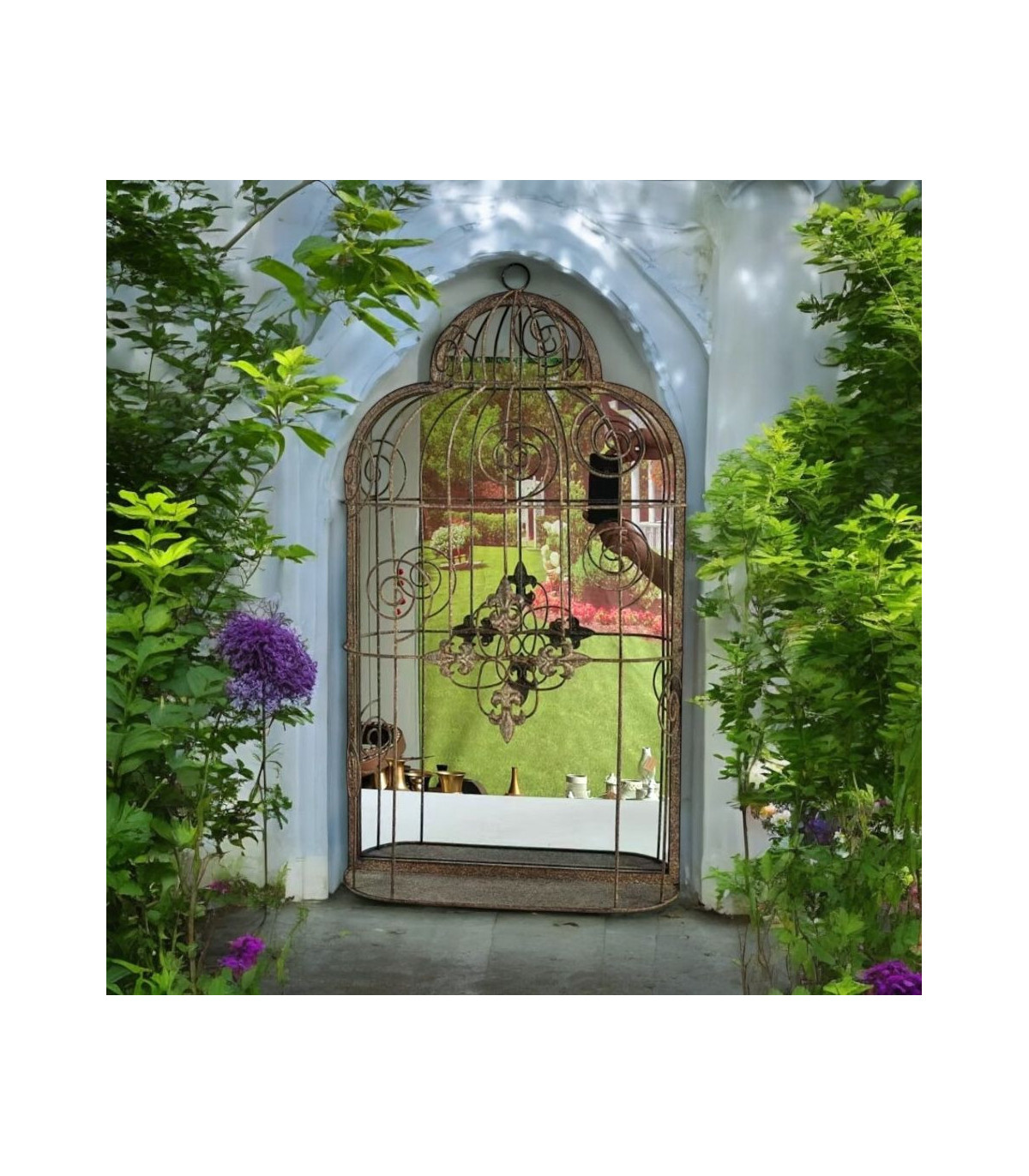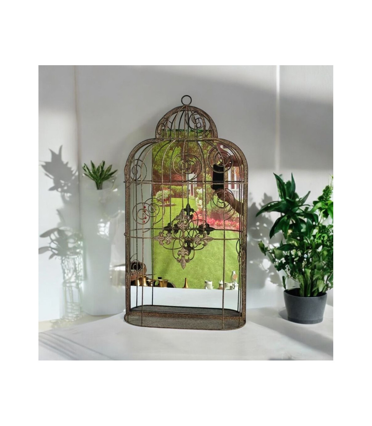 This metal cage with mirror is the perfect decorative garden accessory to bring some antique character to your outdoor space., Indoor or outdoor useDistressed Metal, Easy to hang