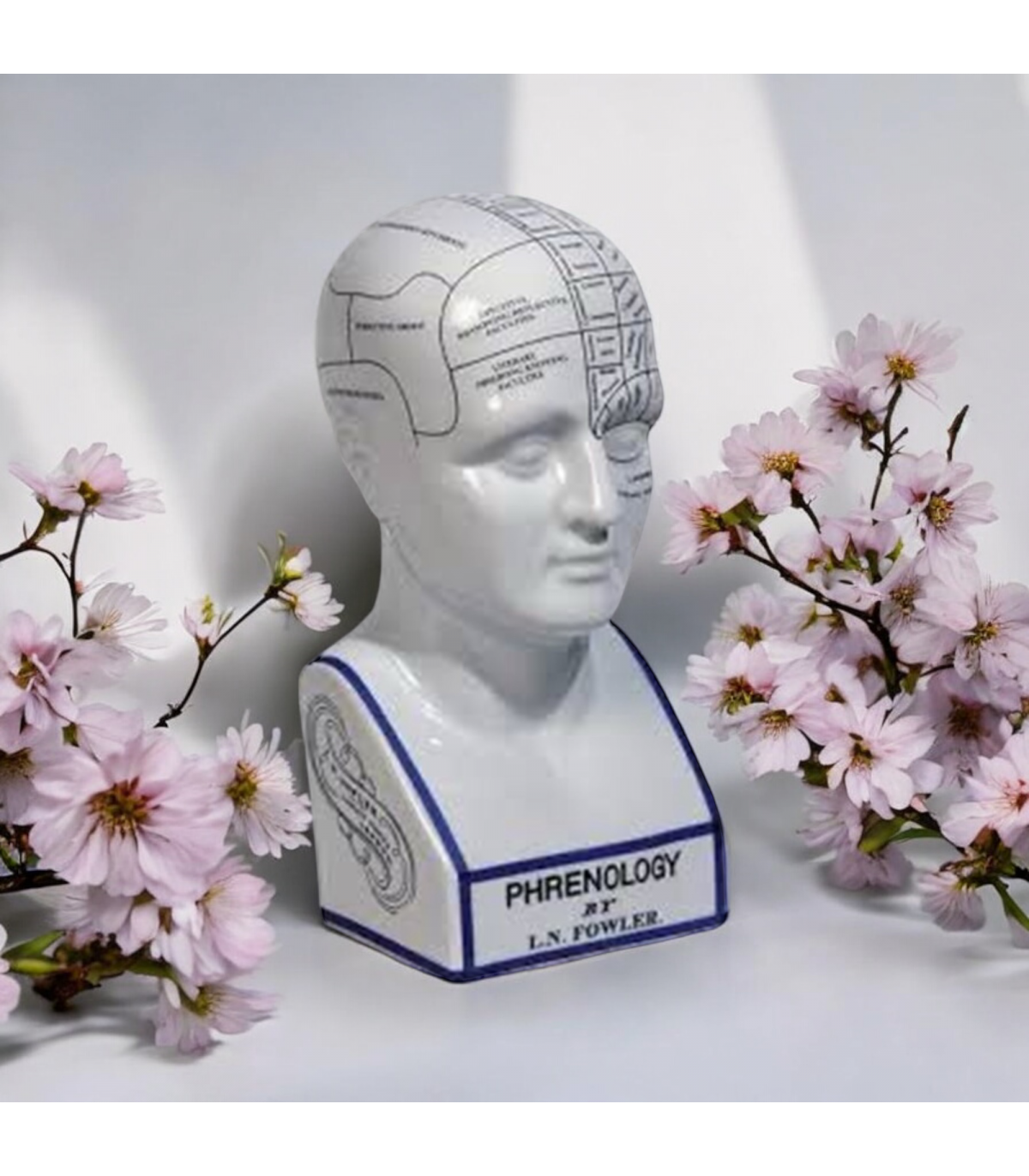 This is a Ceramic Reproduction of Phrenology Hand by LN Fowler in Cracle Glaze Finish, EducationalFreestanding