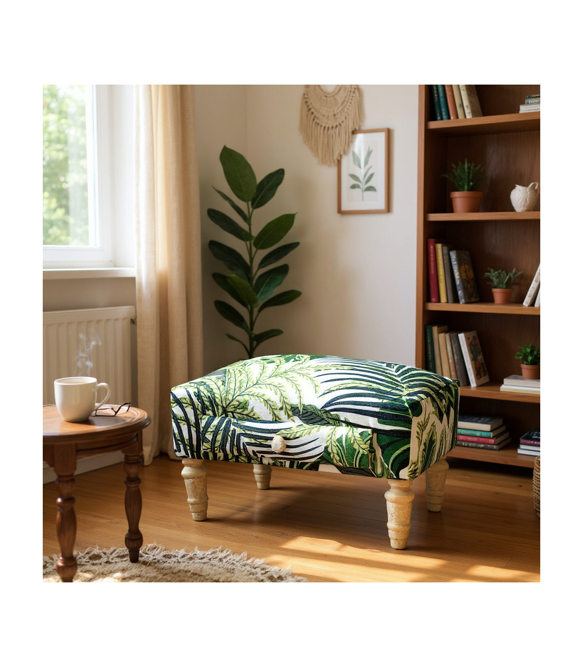 PALM LEAF FABRIC FOOTSTOOL WITH DRAWER