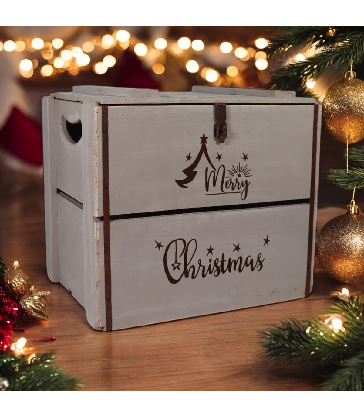 A beautiful Christmas box for a lovely tradition to be reused every year on the night before Christmas. The wooden box is supplied ready to fill with lots of festive treats and goodies to delight your little one with a special delivery from Santa!, Lift up LidHand Finished