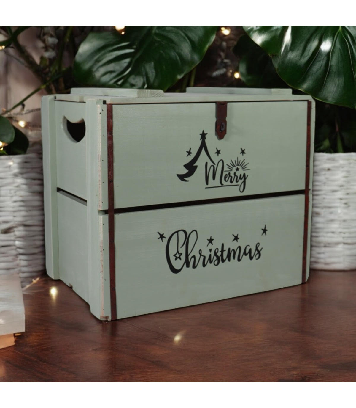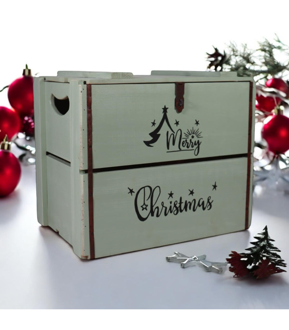 A beautiful Christmas box for a lovely tradition to be reused every year on the night before Christmas. The wooden box is supplied ready to fill with lots of festive treats and goodies to delight your little one with a special delivery from Santa!, Lift up LidHand Finished