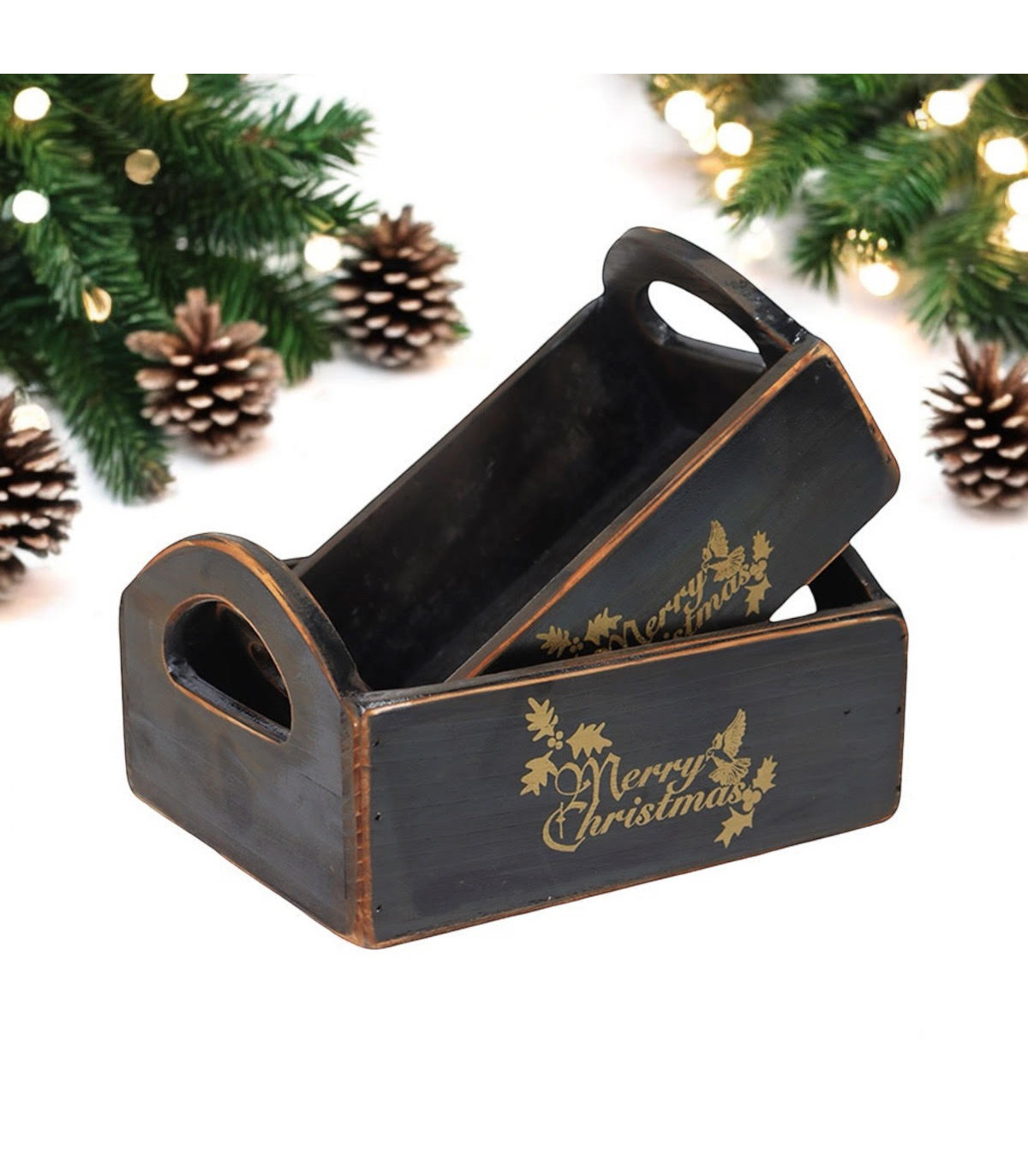 A beautiful set of Christmas boxes for a lovely tradition to be reused every year on the night before Christmas. The wooden box is supplied ready to fill with lots of festive treats and goodies to delight your little one with a special delivery from Santa!, Set of 2Hand Finished