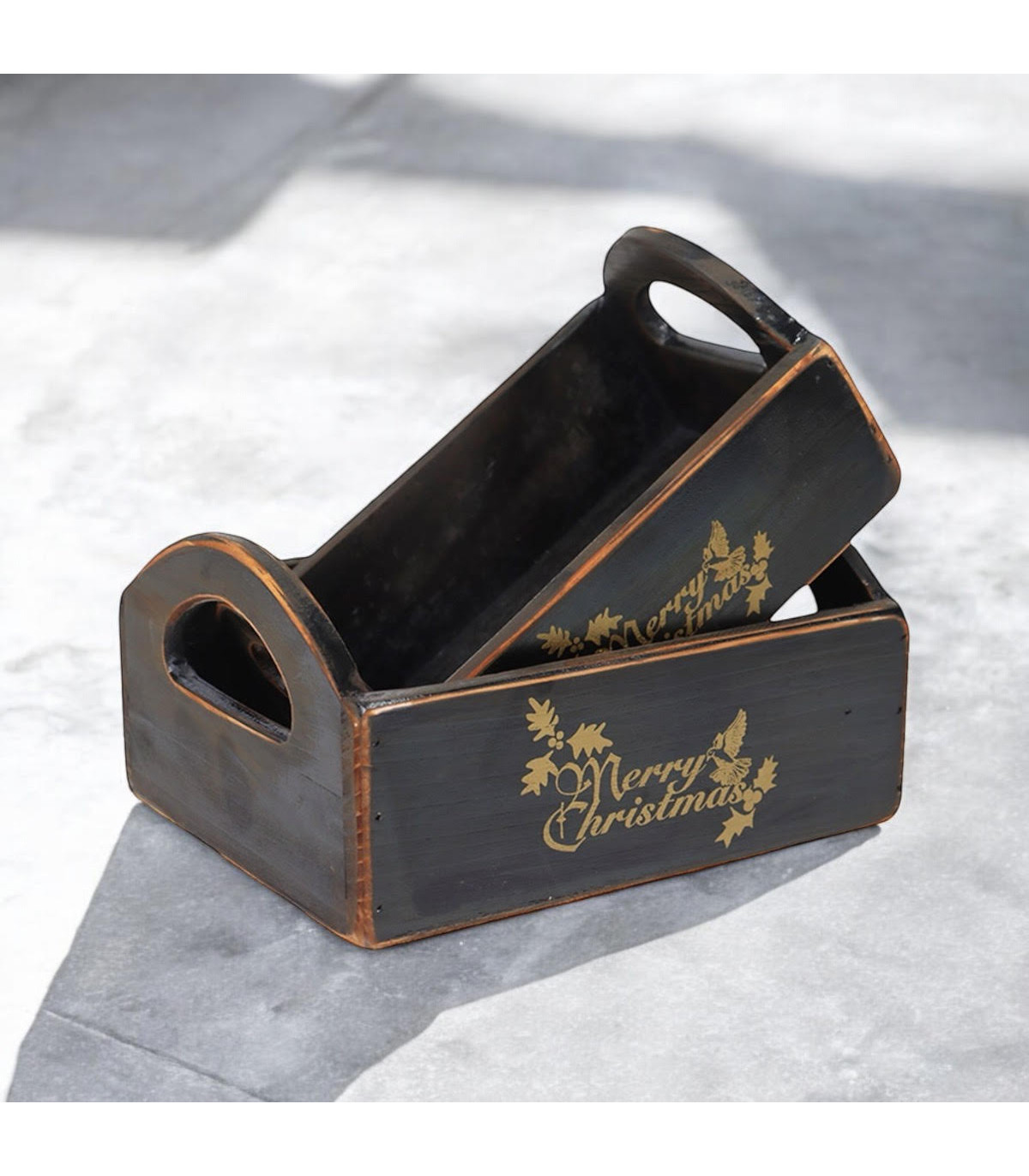 SET 2 BLACK WOODEN CRATES