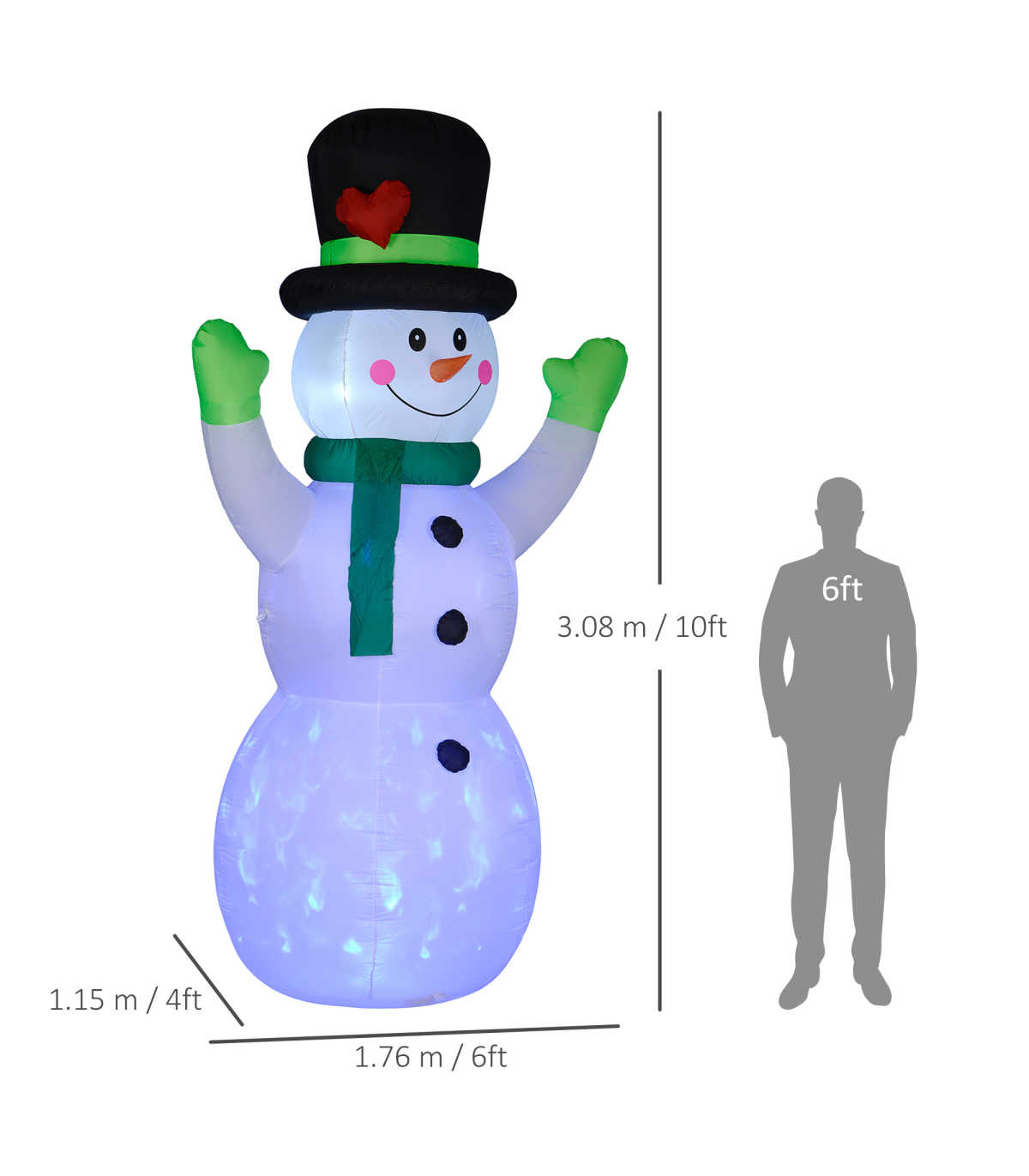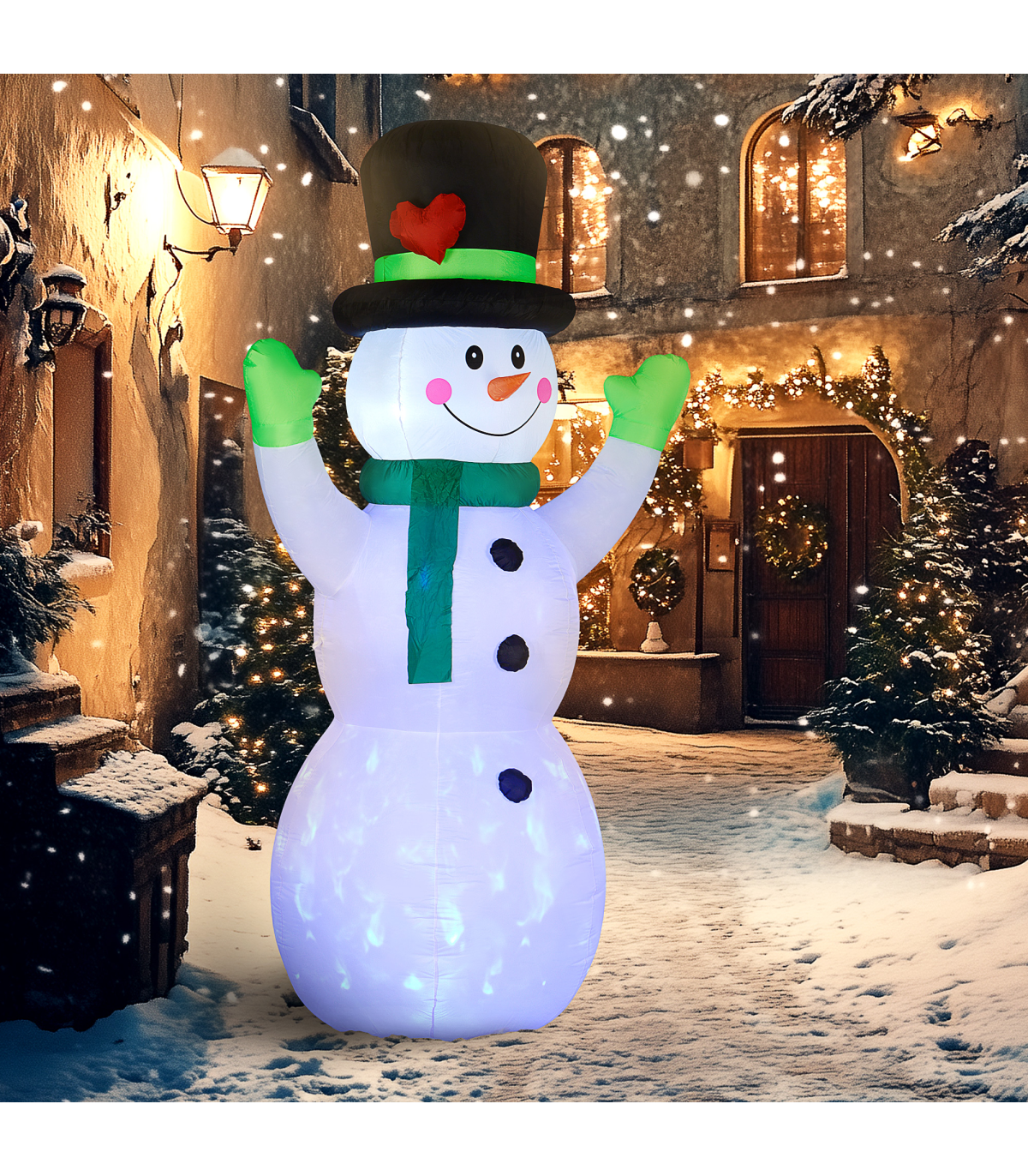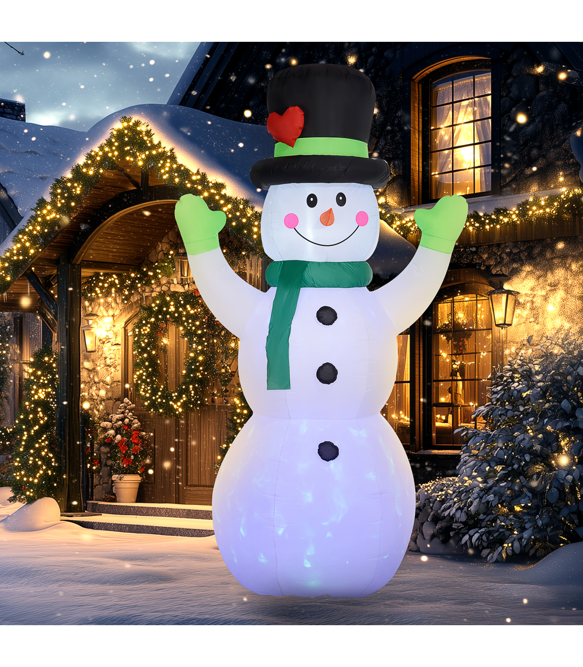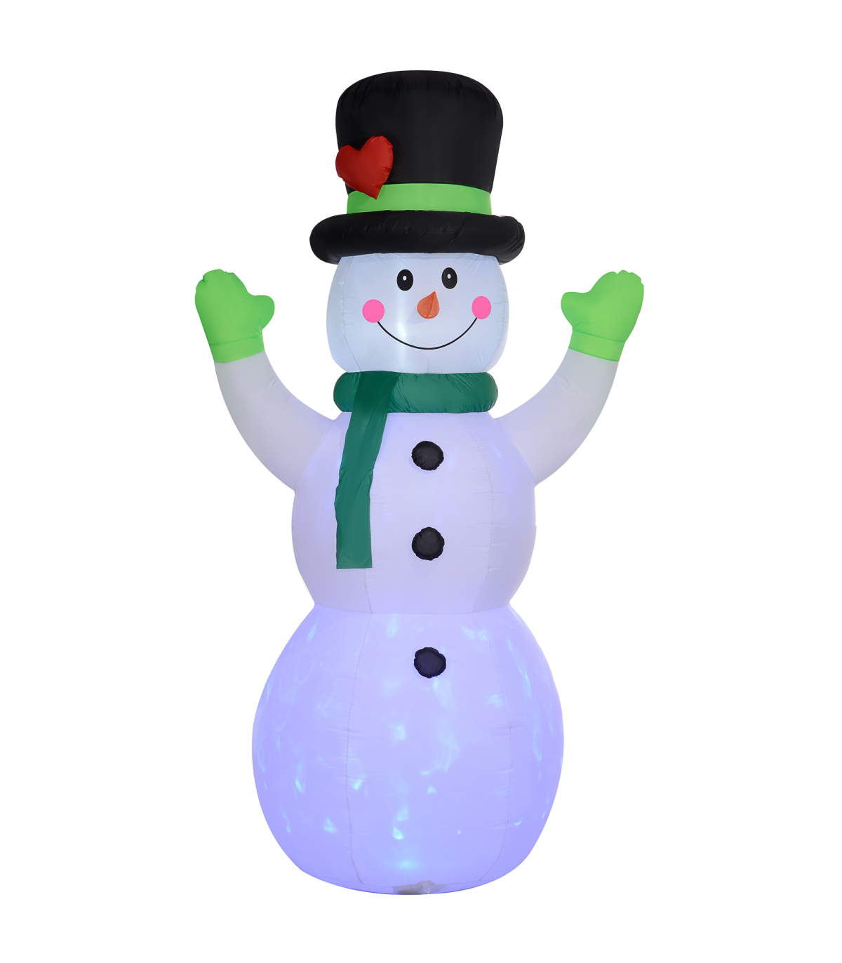 - Type: Inflatable Christmas Cheerful Snowman Wearing Black Hat, Green Scarf and Gloves