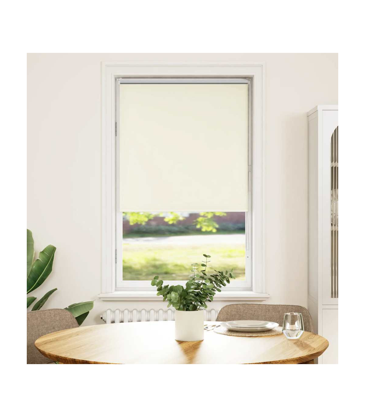 Elevate your room's style and functionality with this roller blind, providing privacy, light control, and heat regulation. Durable and low maintenance: Made from 100% polyester, the roller blind is built to last and resist wear and tear. They are also easy to clean, typically requiring light dusting or wiping with a damp cloth.Privacy and light control: Thanks to the blackout design, this roller blind provides privacy and partially blocks direct sunlight so that you can regulate the indoor temperature according to your needs.Multiple mounting methods: You can attach the roller blind to the wall or window with screws or without drilling using clamping brackets, depending on your needs. Clamping brackets for window frame rebate thickness between 1,6 and 2,5 cm.Child safety and adjustability: The roller blind includes a chain connector that makes it easy to adjust the height according to your needs, and it also has a cord clip to add child safety.Wide applications: This versatile roller blind is suitable for homes, offices, cafes, office buildings, and so on. Warning: Keep cords out of the reach of young children. Cords may become wrapped around a child’s neck. Good to know:Before buying blinds, start by measuring your window glass. Just a friendly tip: the fabric is a bit narrower than the total width, including the brackets.To make sure your new blinds provide complete coverage, just add 4,3 cm to the width of the window glass when calculating what to order.
